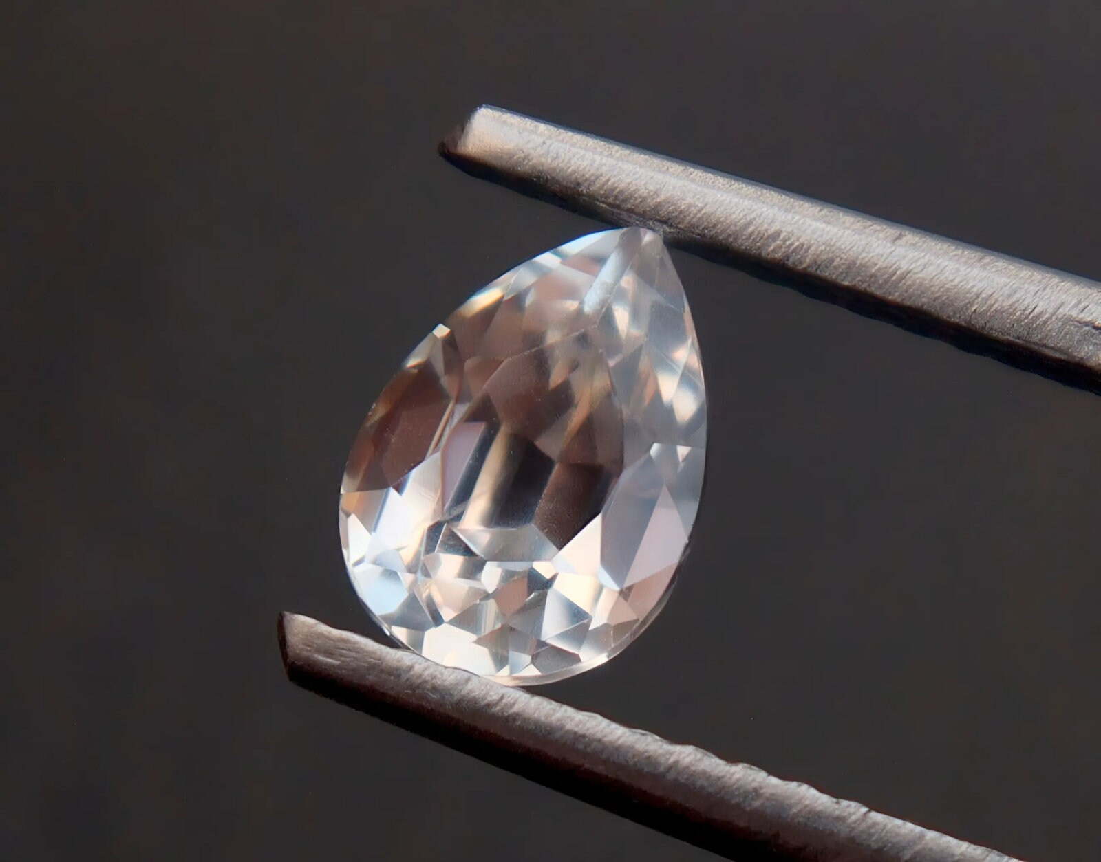 certified by GSI natural white sapphire yellow tint pear cut faceted loose gemstone 1.33 carat for jewelry making, september birthstone -