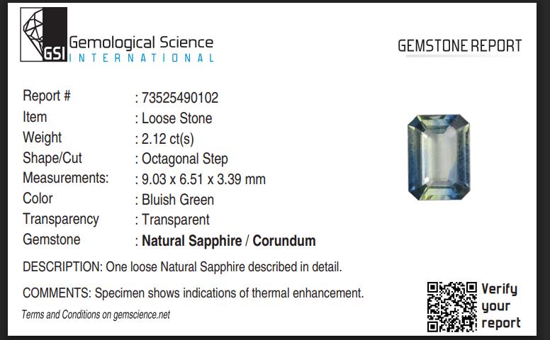 natural green teal sapphire emerald cut faceted loose gemstone 2.12 carat for jewelry making, september birthstone -