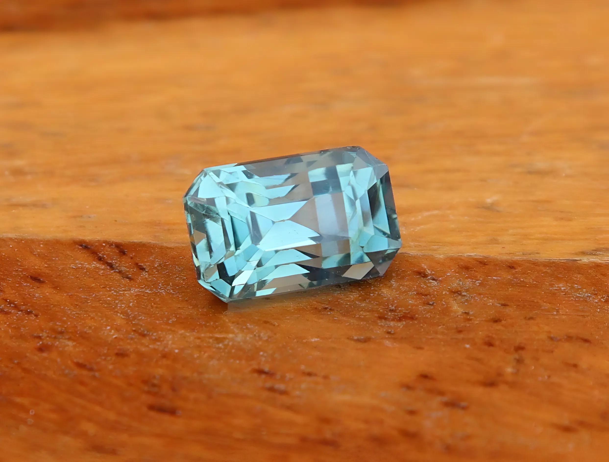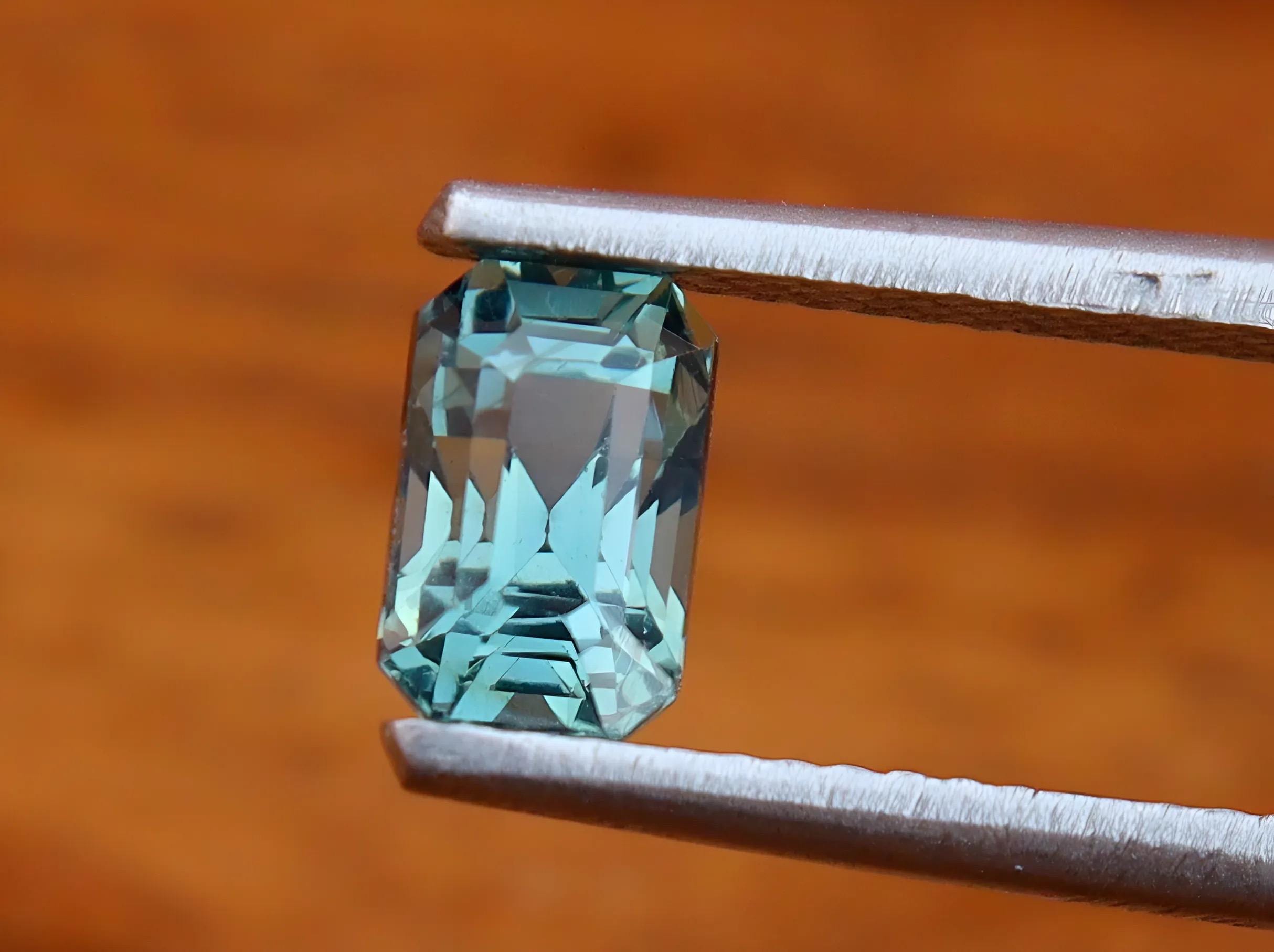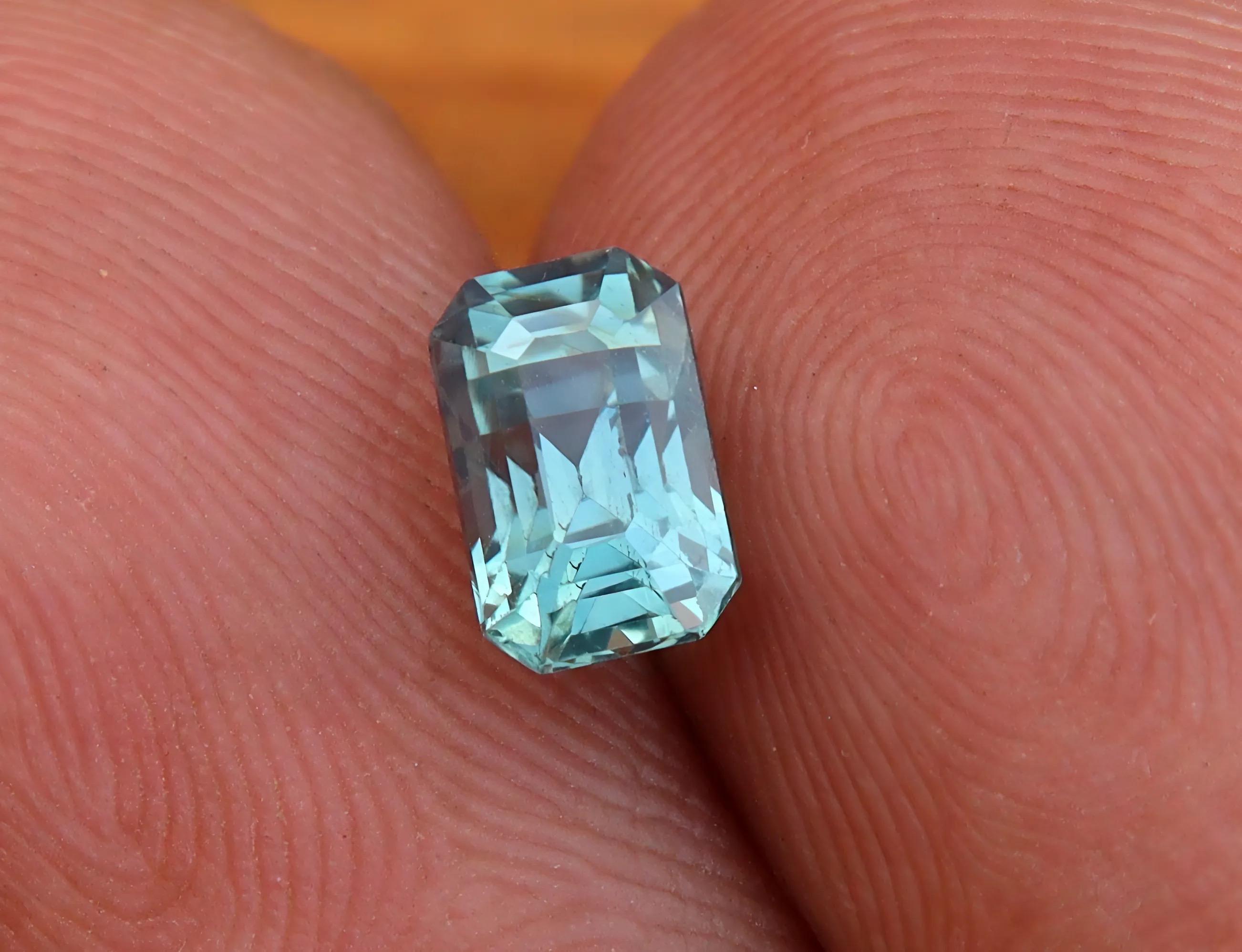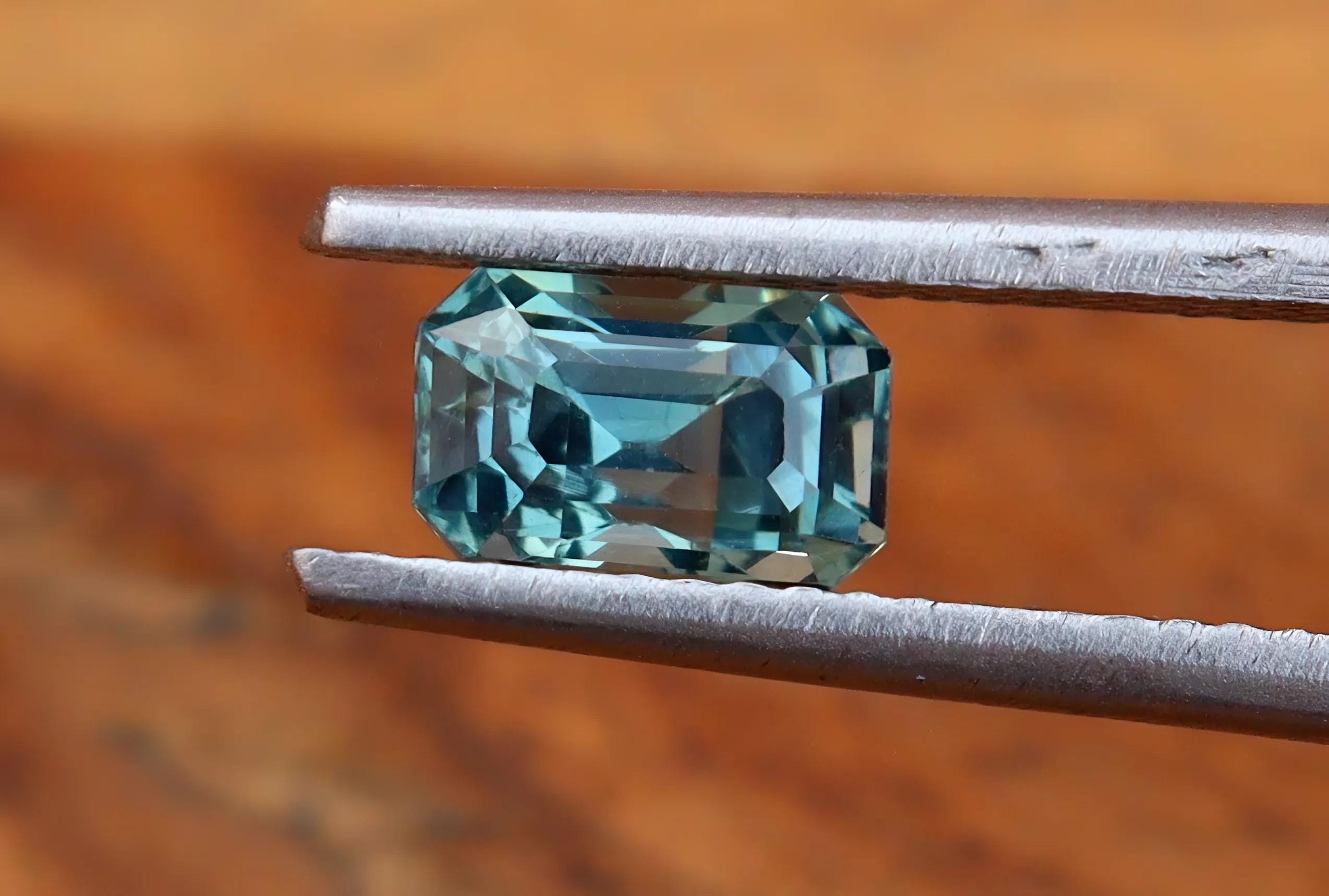 certified by GSI natural green Teal Sapphire emerald cut faceted loose gemstone 1.18 carat for jewelry making, September birthstone -