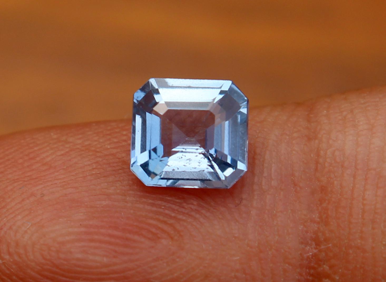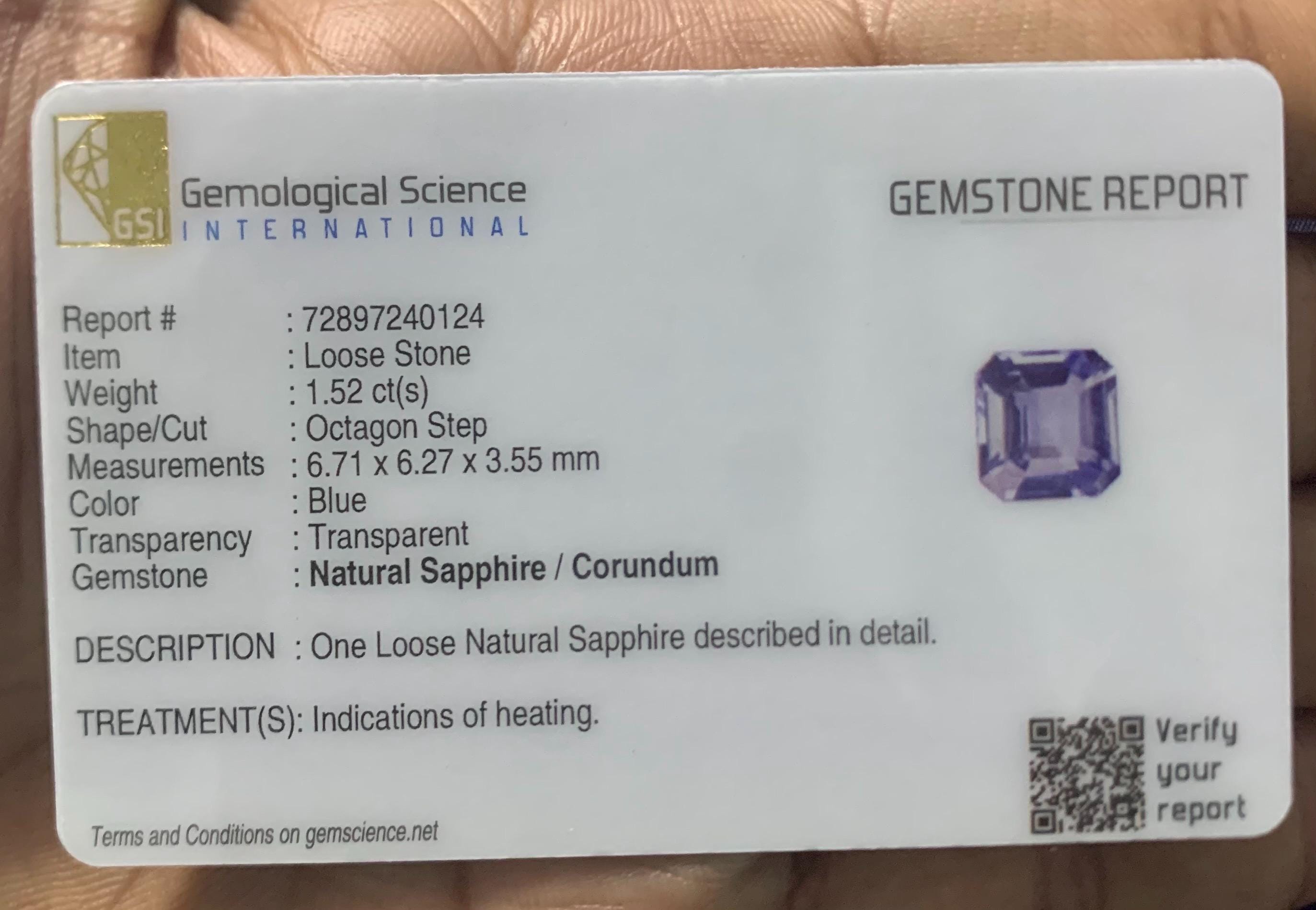 Certified by GSI Natural Mint Blue Sapphire Octagon Asscher Cut Faceted Loose Gemstone 1.52 Carat September birthstone, Engagement Ring -