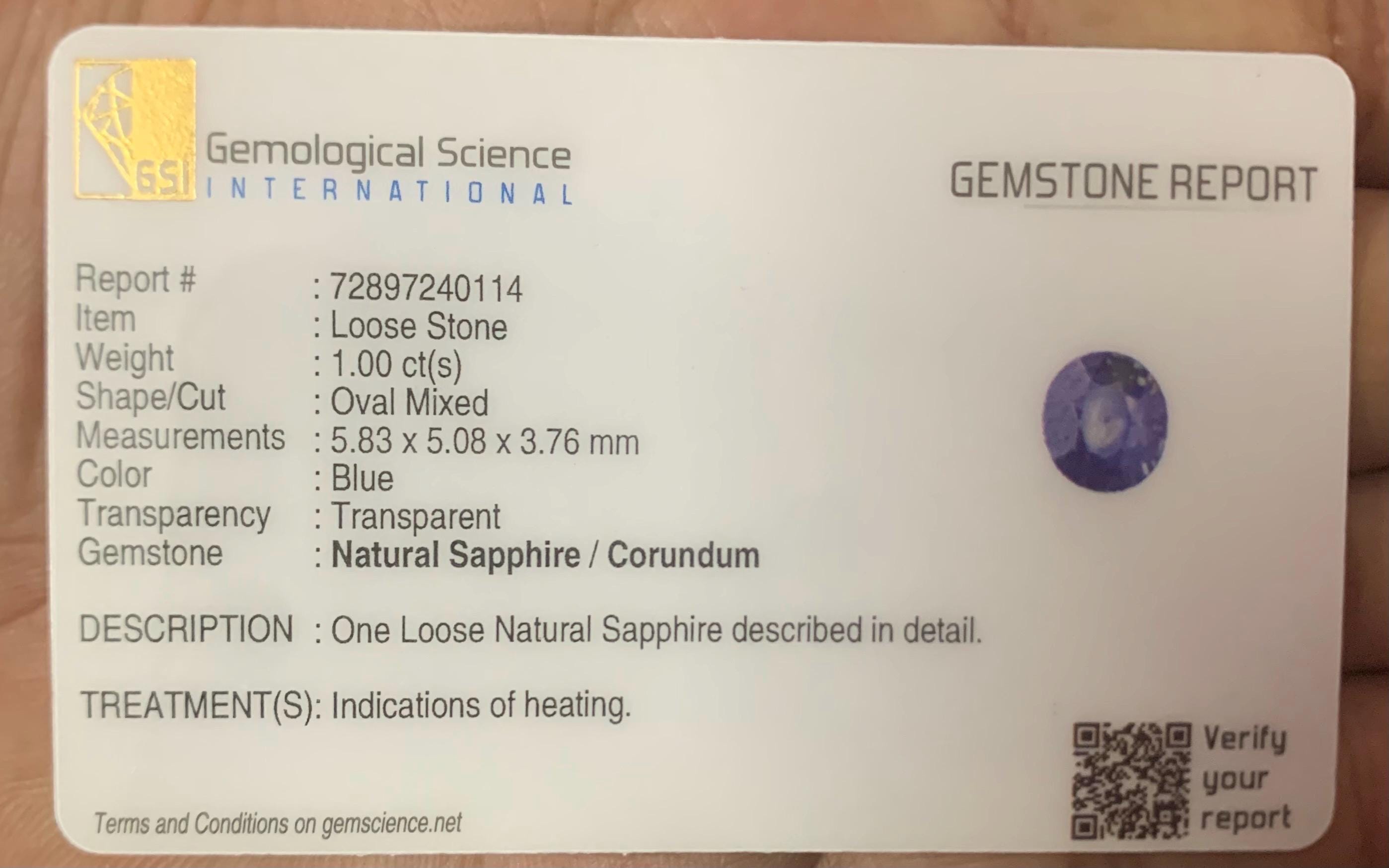 GSI Certified Natural Blue Sapphire Oval Cut Faceted Loose Gemstone 1 carat, September Birthstone For Engagement Ring -