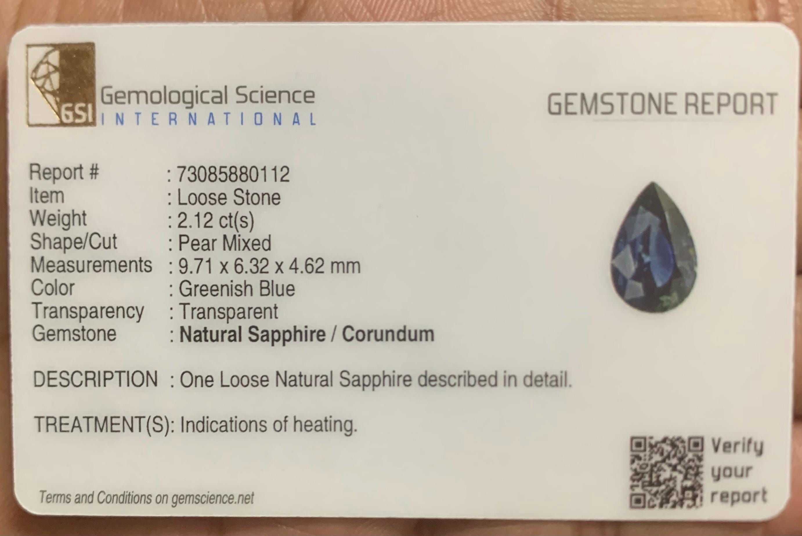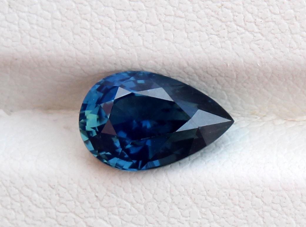 Certified by GSI Natural Teal Blue Sapphire Pear Cut Faceted Loose Gemstone 2.12 Carat for Engagement Ring, September Birthstone -