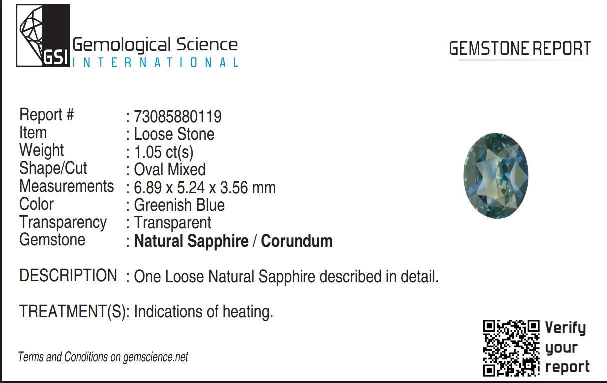 GSI Certified Natural Greenish Blue Teal Sapphire Oval cut Faceted Loose Gemstone 1.05 Carat, September Birthstone For Engagement Ring -