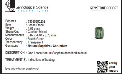 Certified by GSI Unheated Natural Bluish Green Teal Sapphire Emerald Cut Loose Gemstone 1.06 Carat September Birthstone, Engagement Ring -