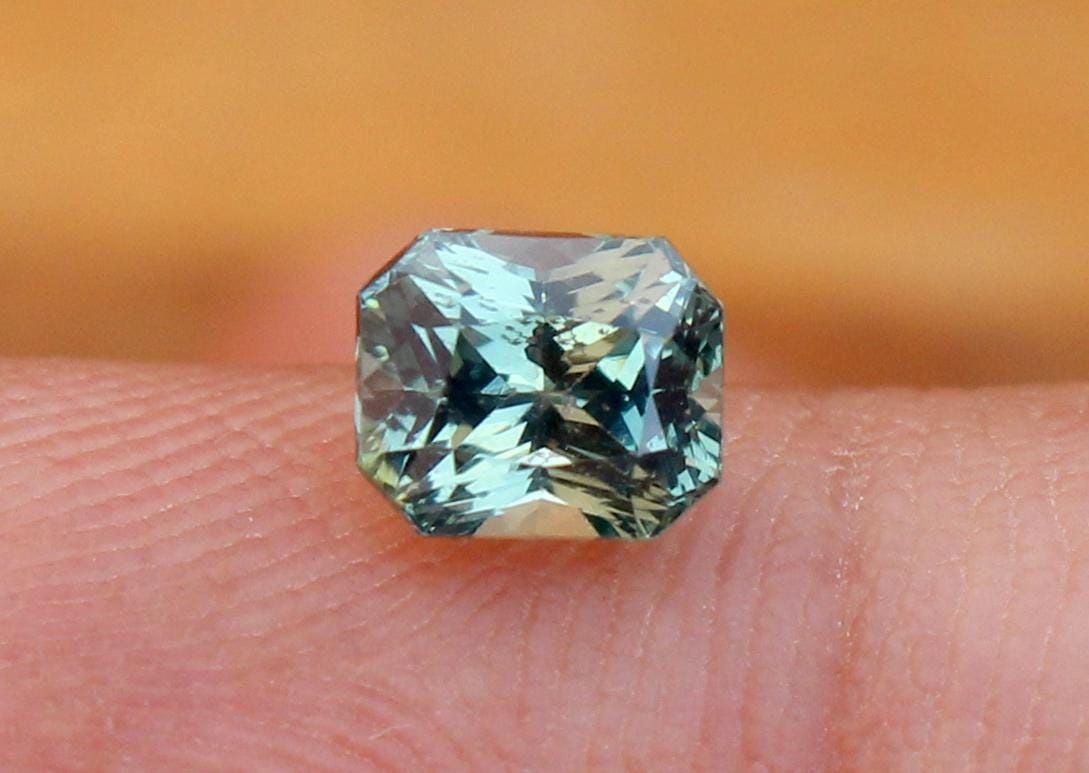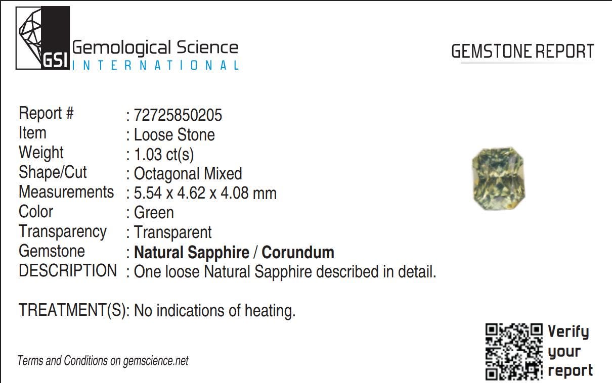 Certified by GSI Unheated Natural Green Sapphire Emerald Cut Faceted Loose Gemstone 1.03 Carat September Birthstone, Engagement Ring -