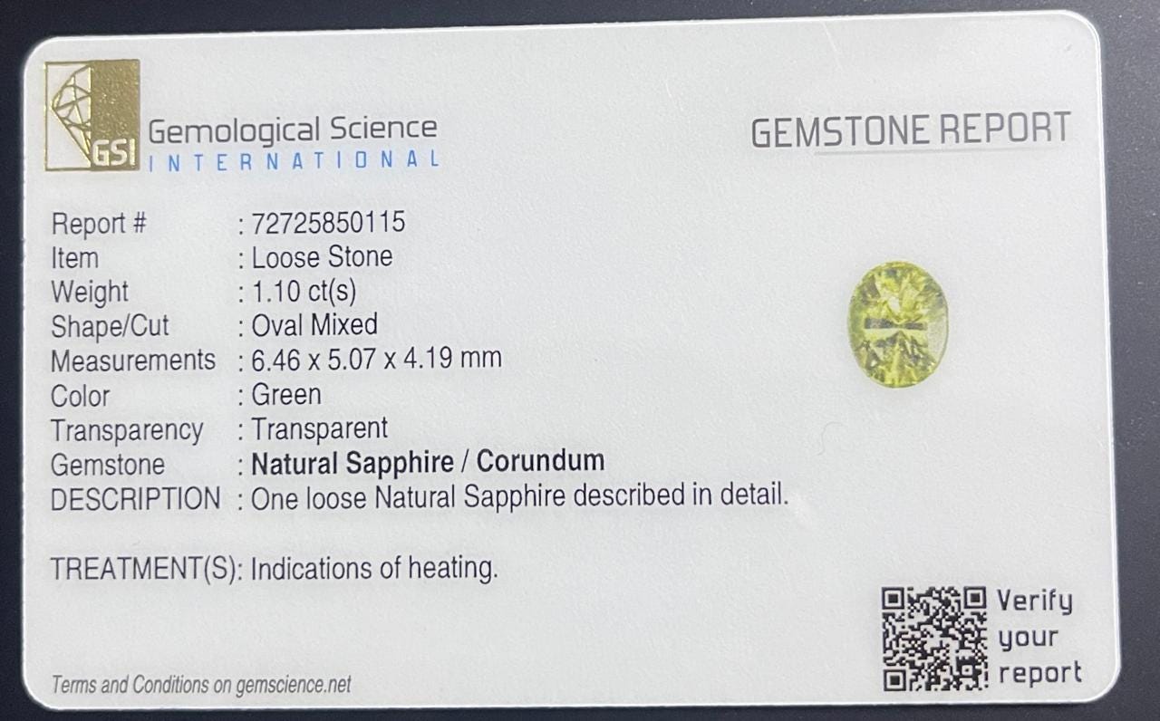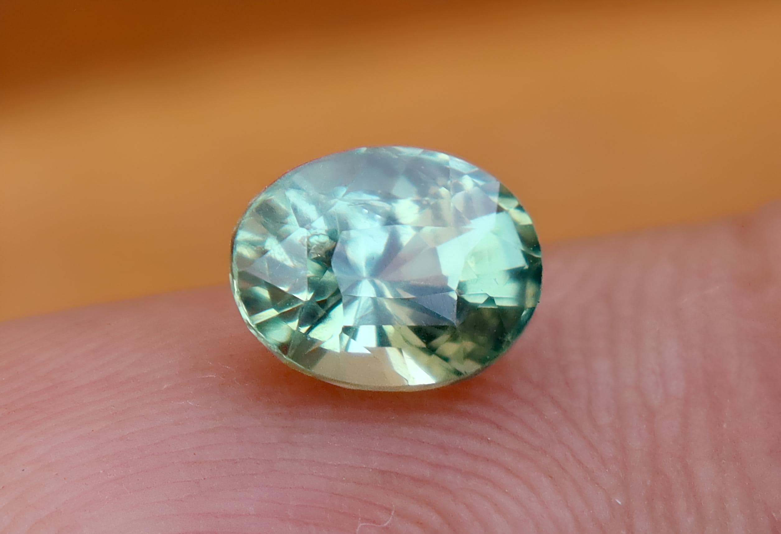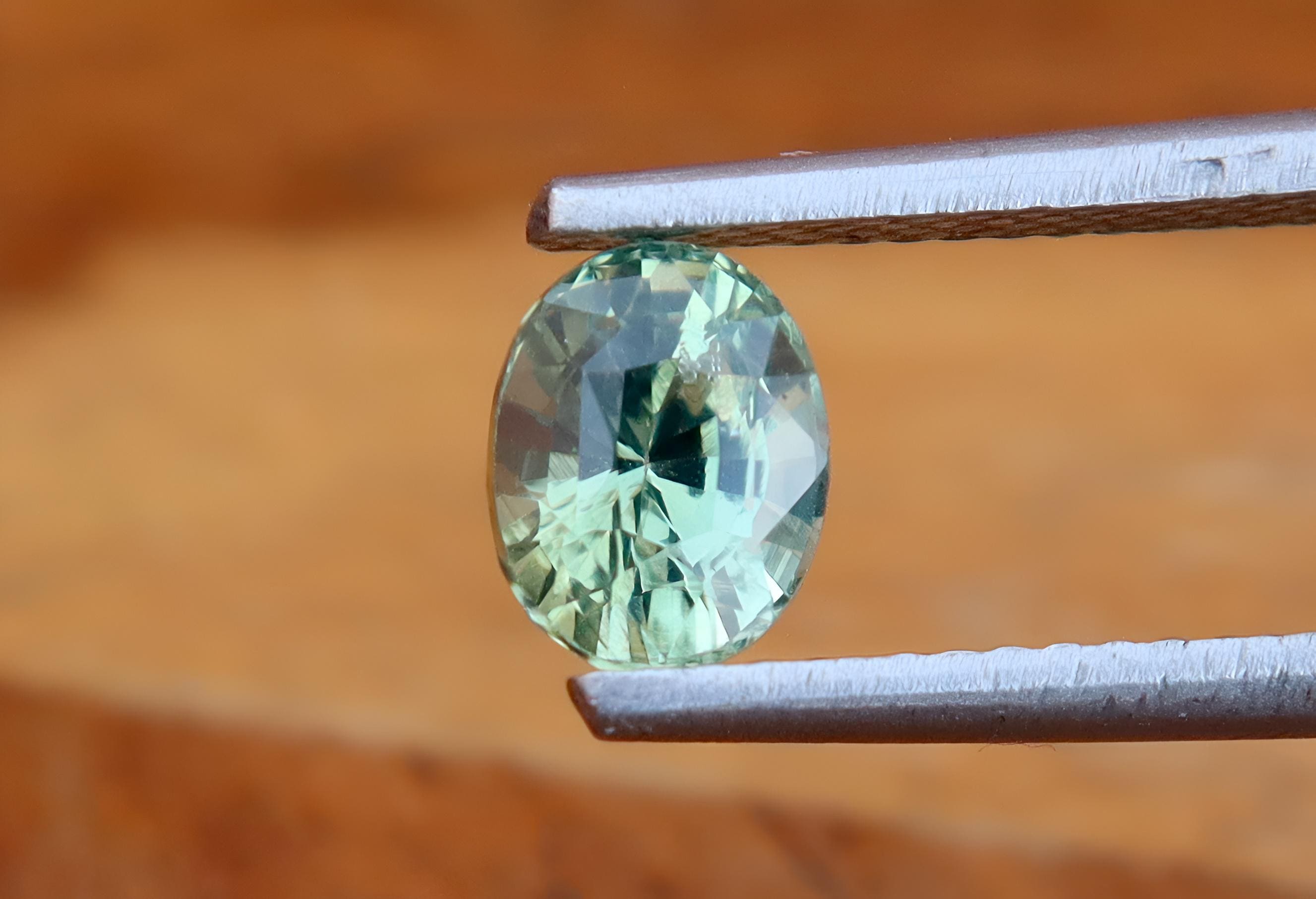 natural green sapphire Oval cut faceted loose gemstone 1.10 carat for jewelry making, september birthstone -
