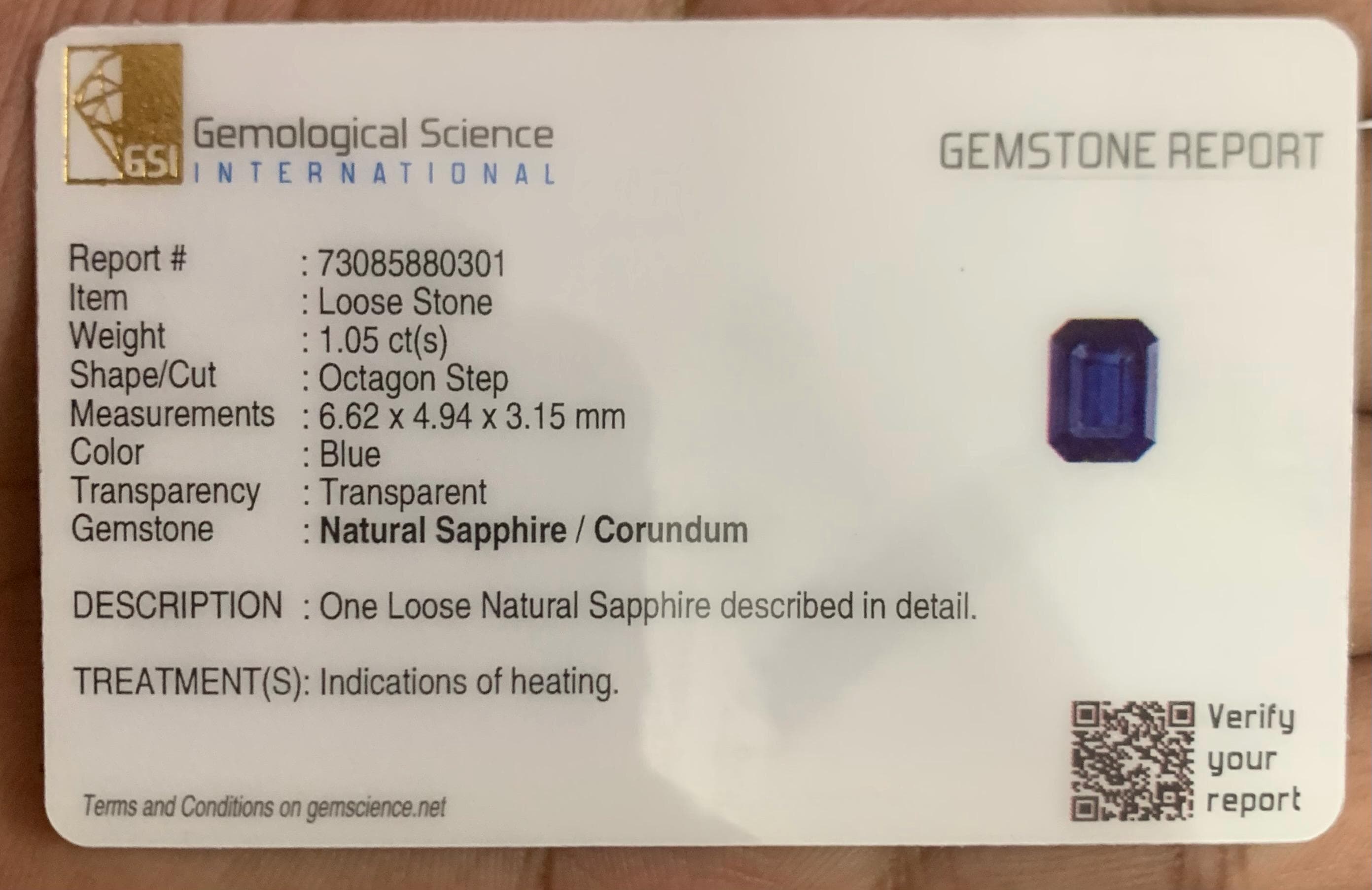 Certified Midnight Blue Sapphire 1.05 Carat Emerald Cut Gemstone, Engagement Ring -