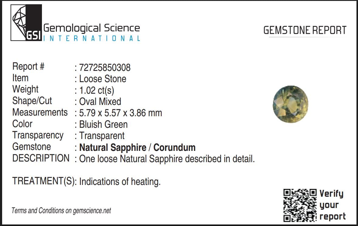 certified by GSI Natural Parti Teal Sapphire Roundish Oval Cut Faceted Loose Gemstone 1.02 Carat for Engagement Ring, September birthstone -
