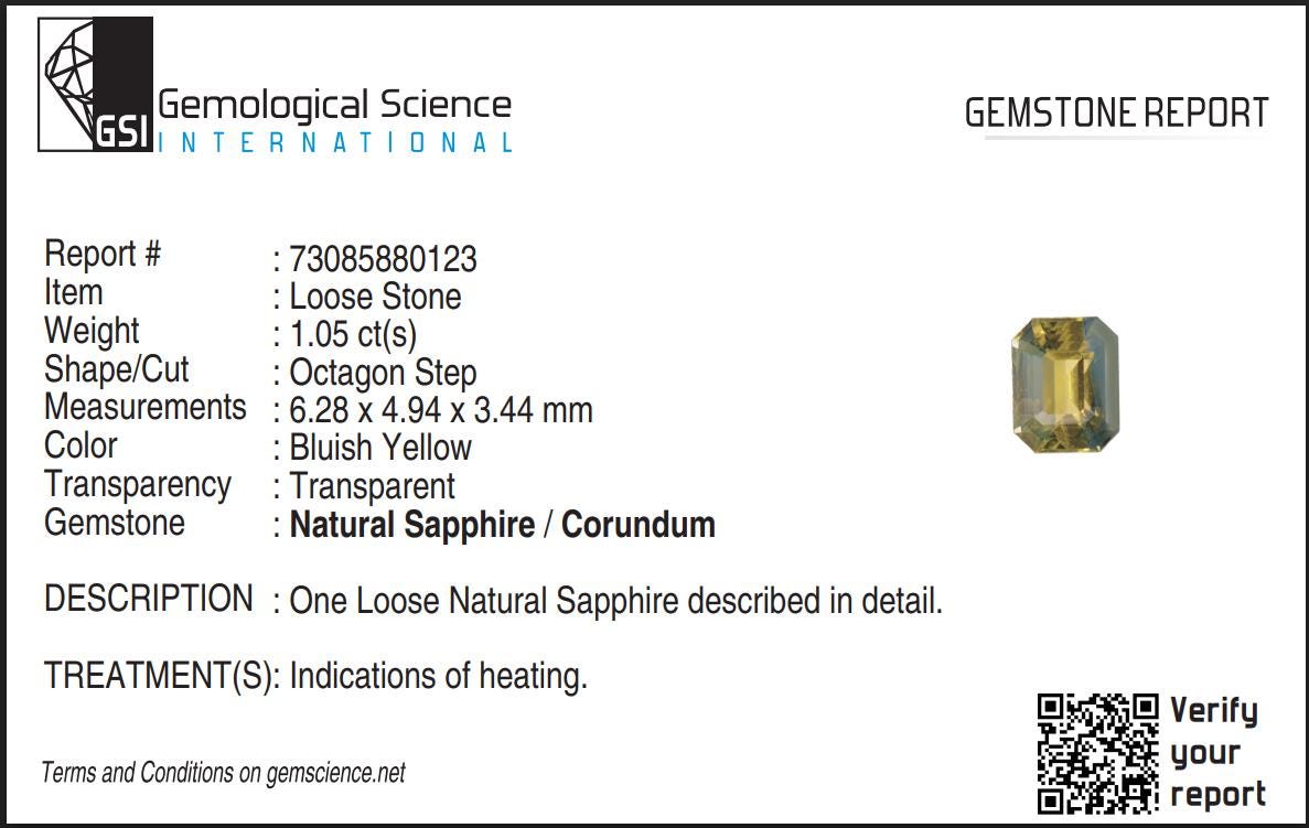 GSI Certified Parti Sapphire 1.05 Carat Emerald Cut Gemstone, Engagement Ring -