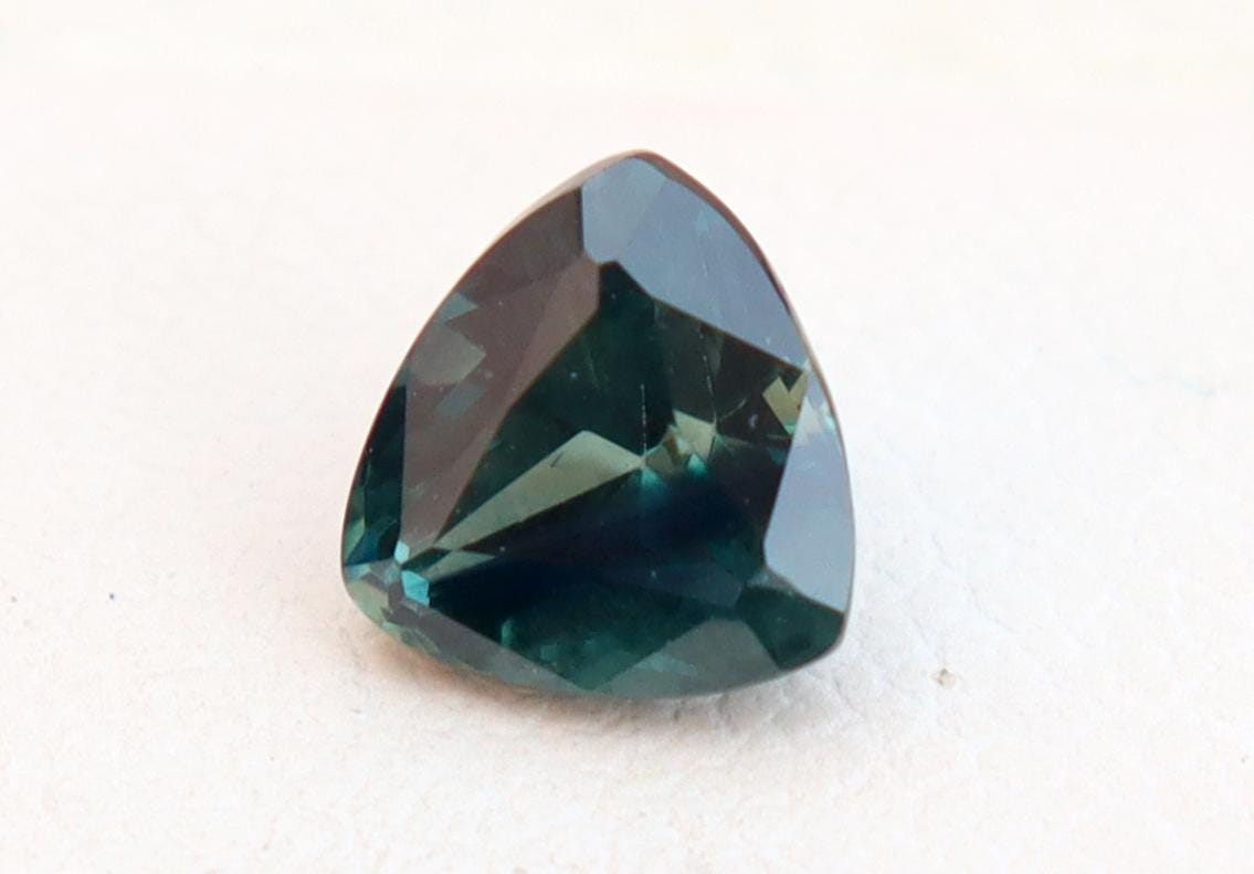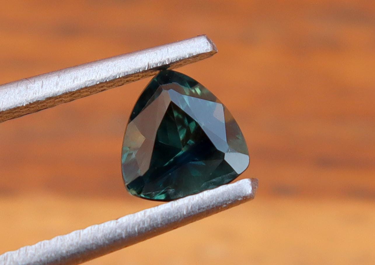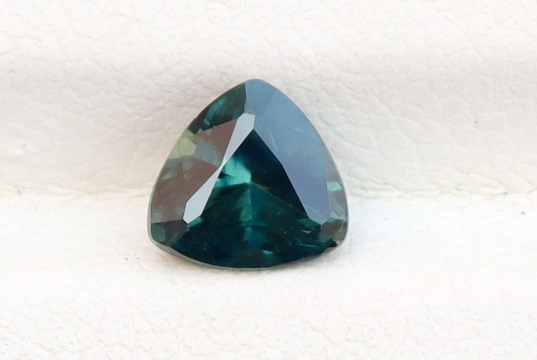Certified Dark Teal Sapphire: 1.04 Carat Trillion Cut Gemstone, Engagement Ring -