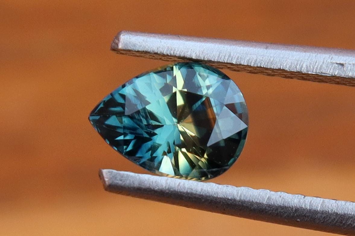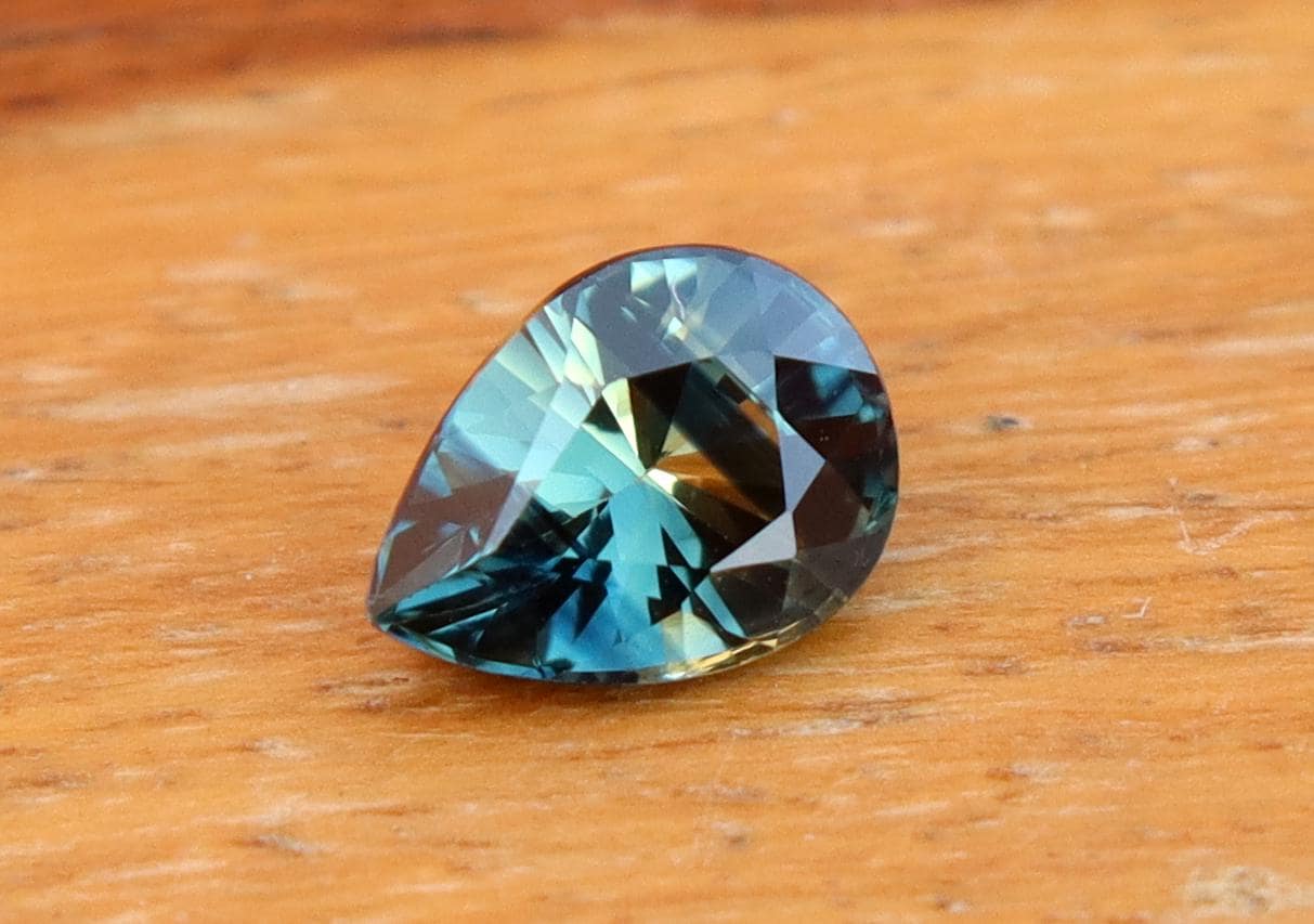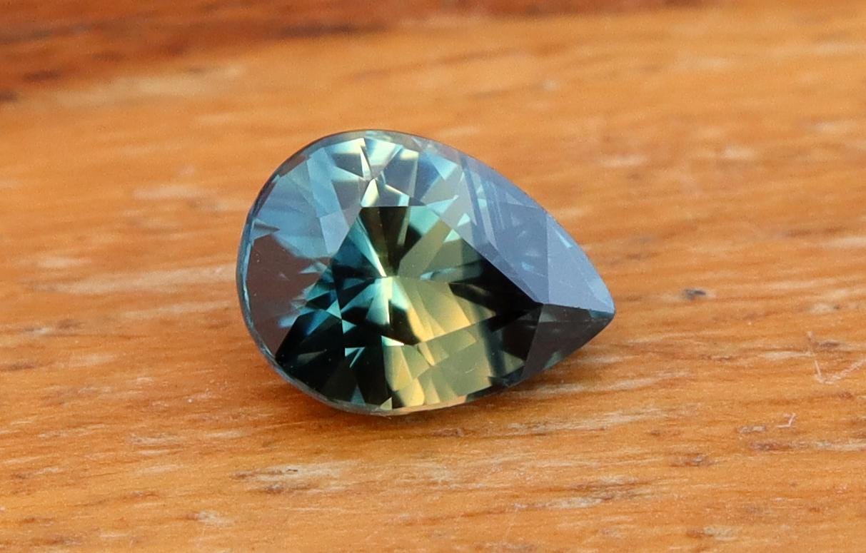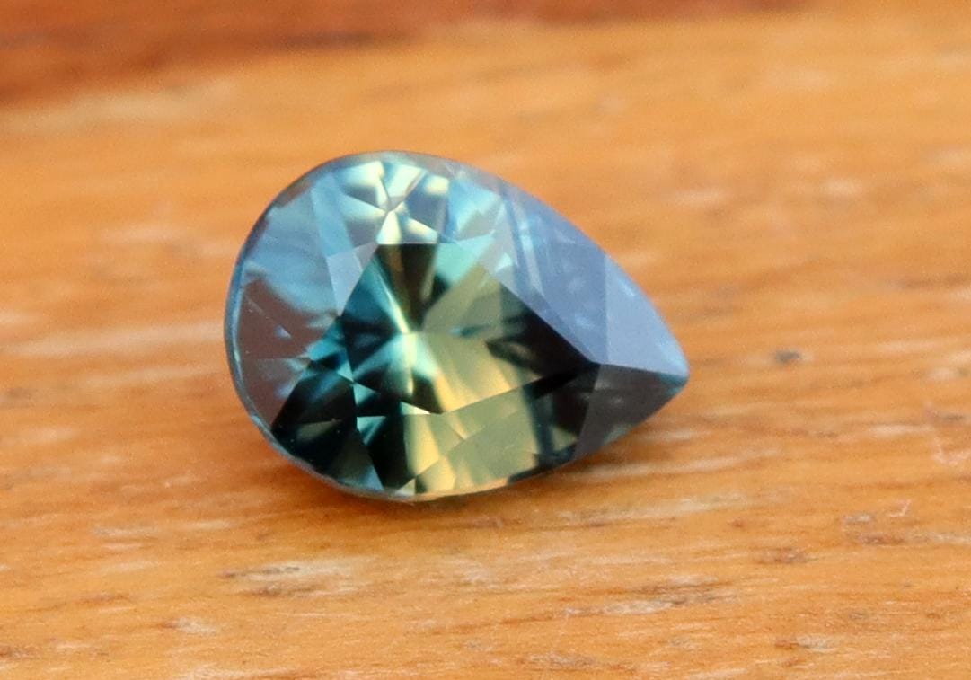 GSI Certified Deep Teal Parti Sapphire: 1.03 Carat Pear Cut Gemstone, Engagement Ring -