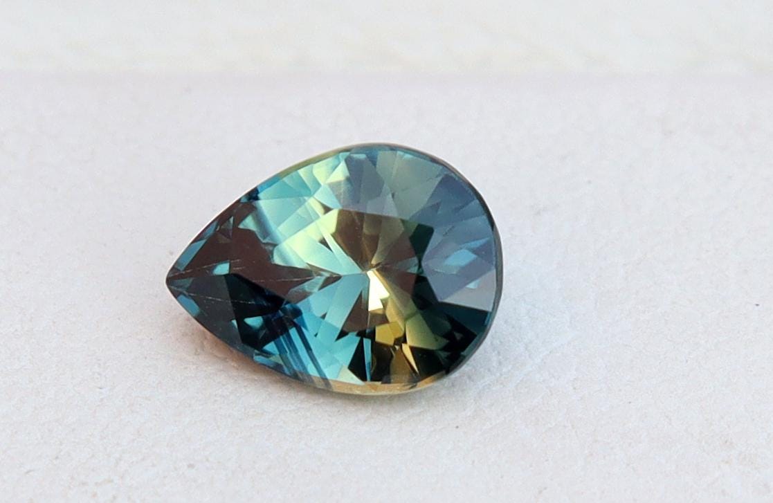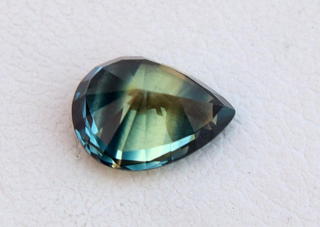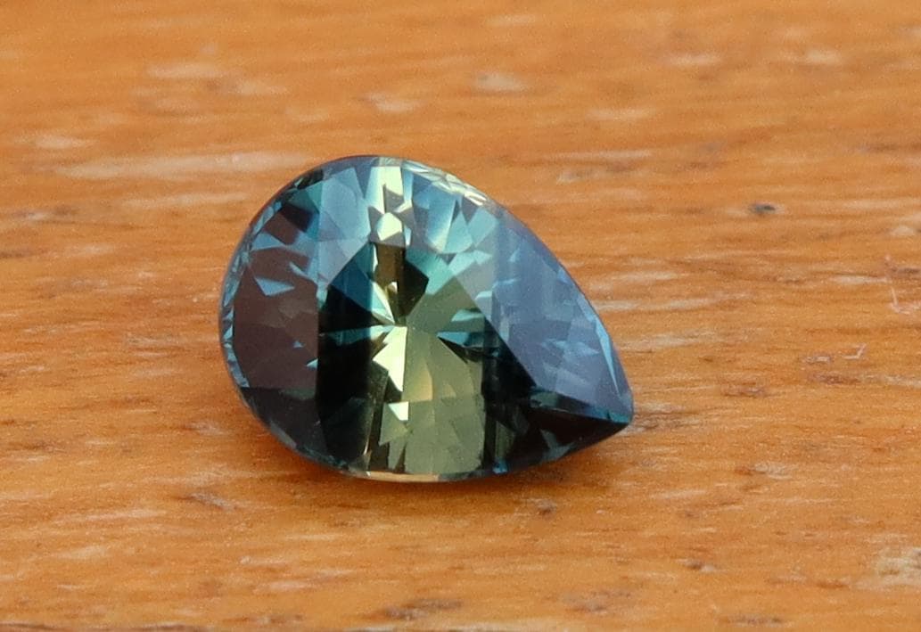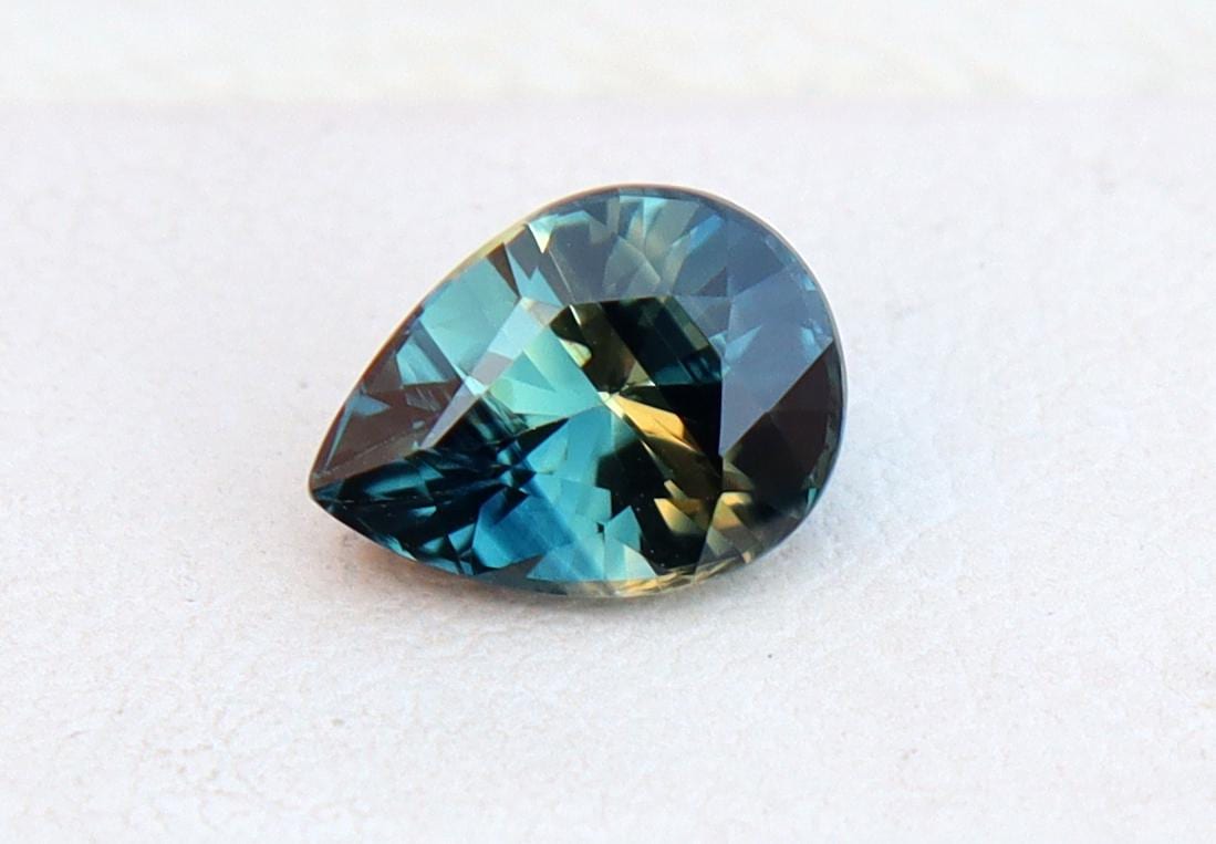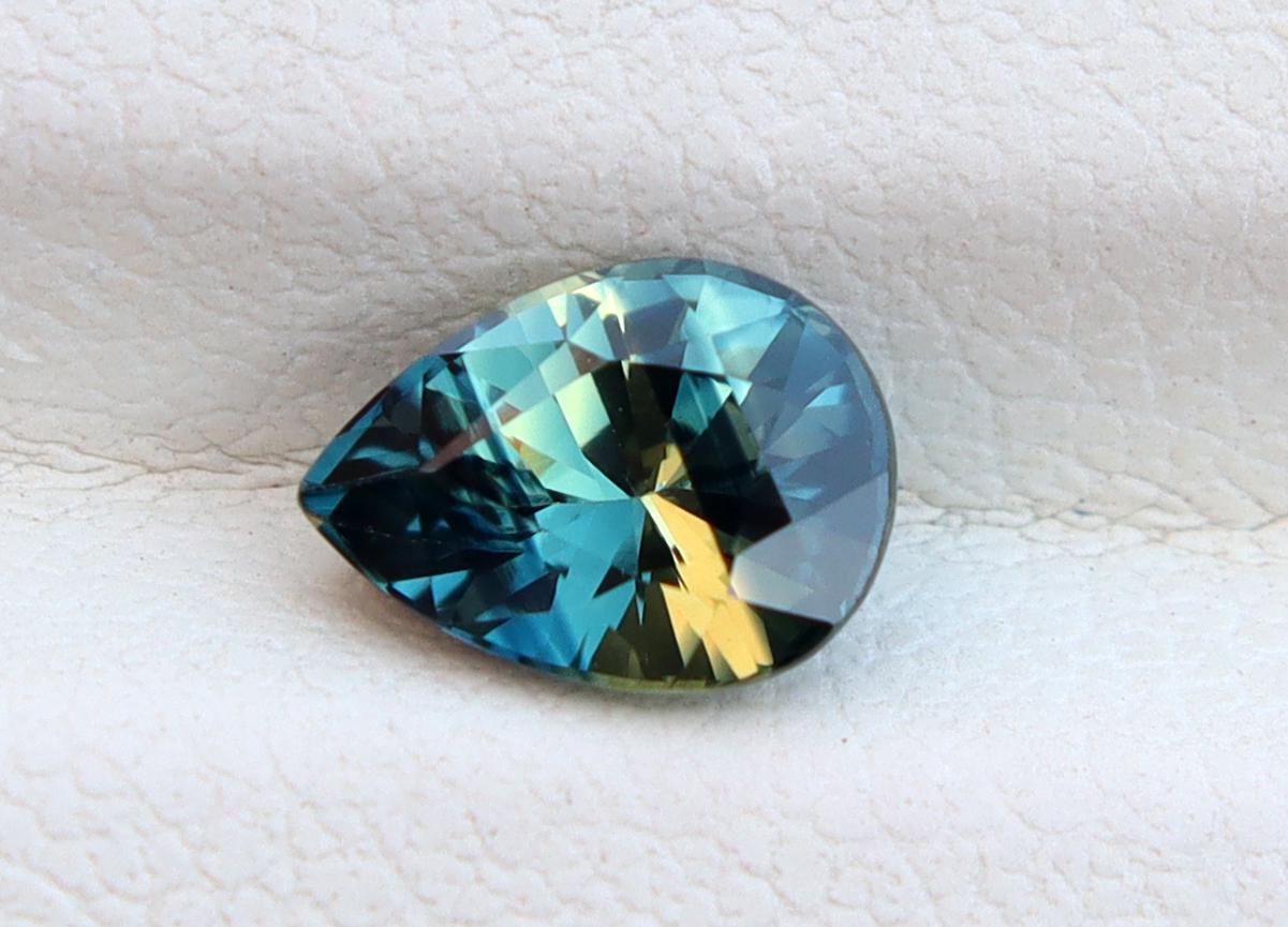 GSI Certified Deep Teal Parti Sapphire: 1.03 Carat Pear Cut Gemstone, Engagement Ring -