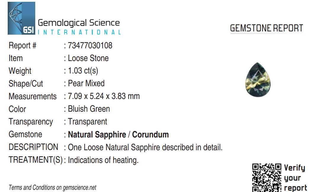 Gemstone certificate number : 73477030108
