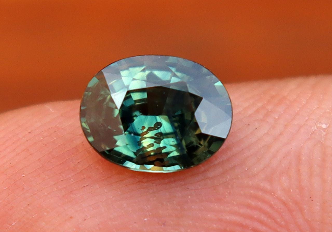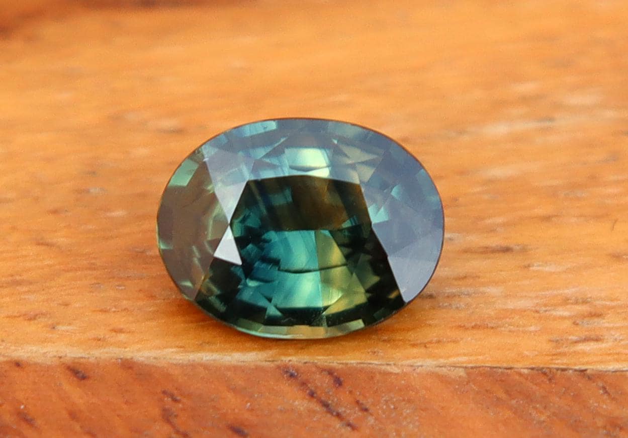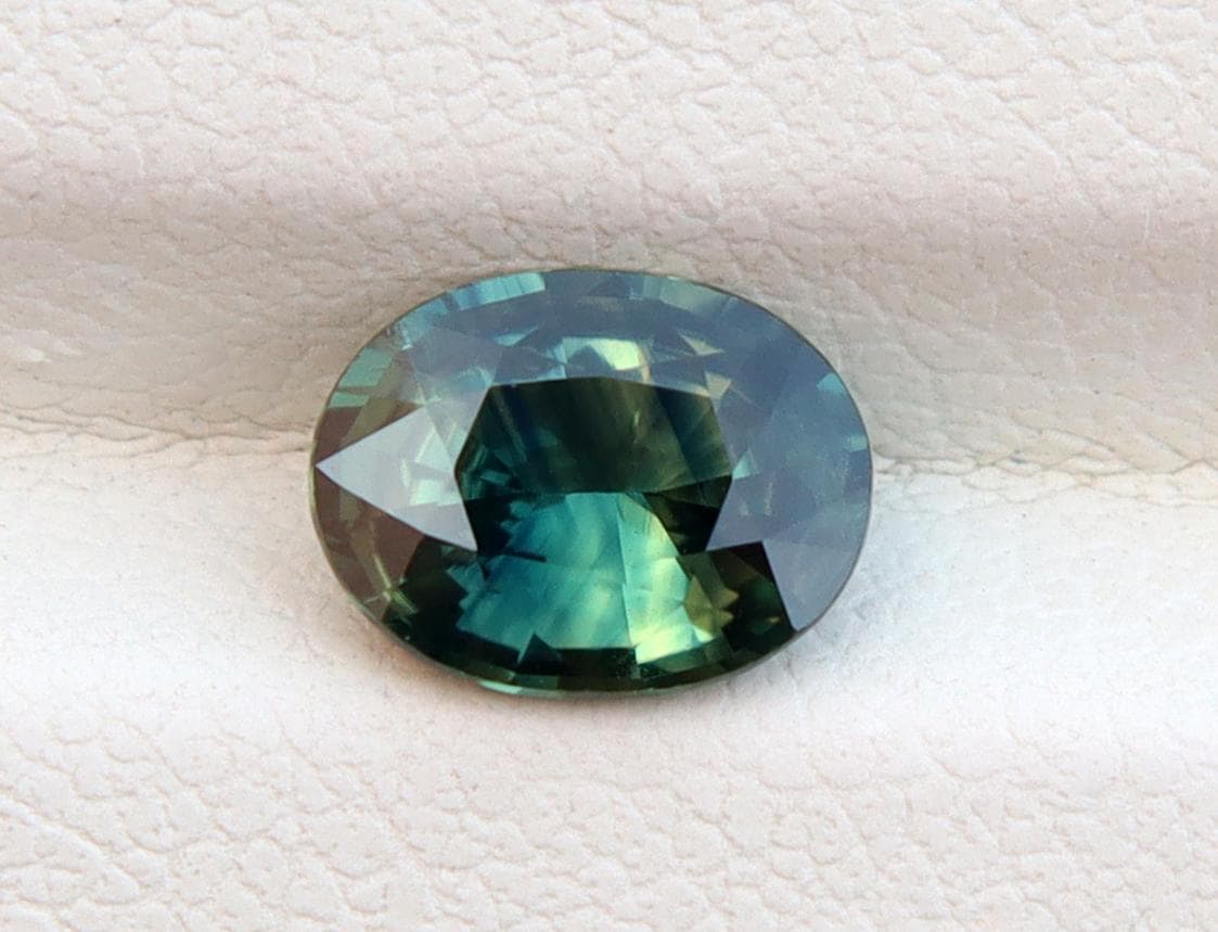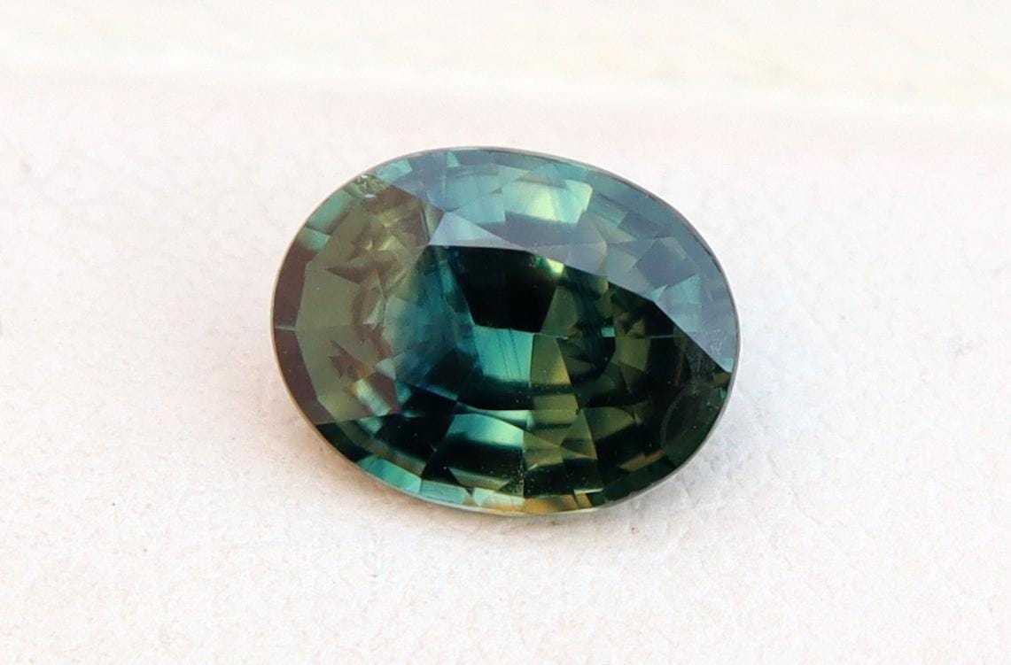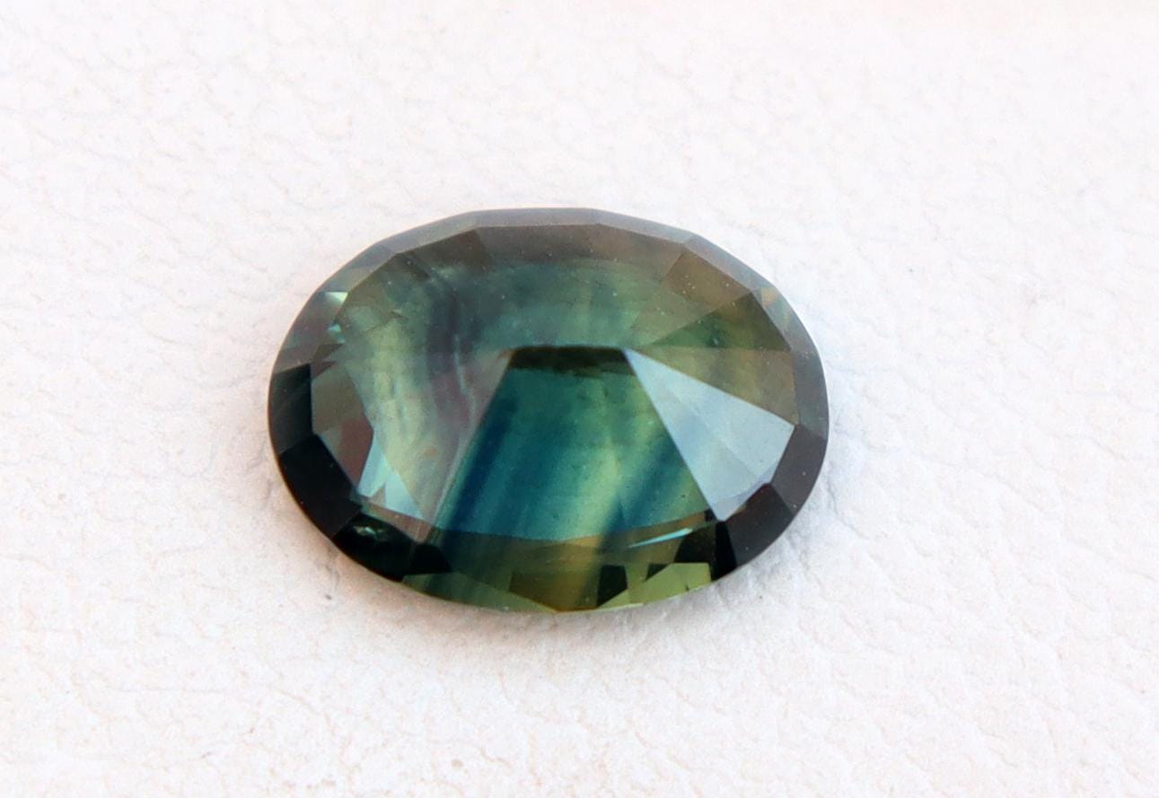 GSI Certified Deep Green Parti Sapphire 1.13 Carat Oval Cut Gemstone, Engagement Ring -