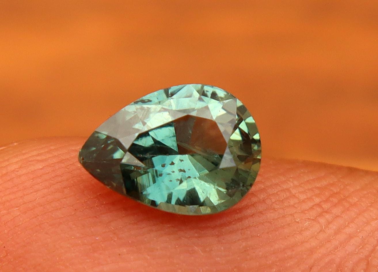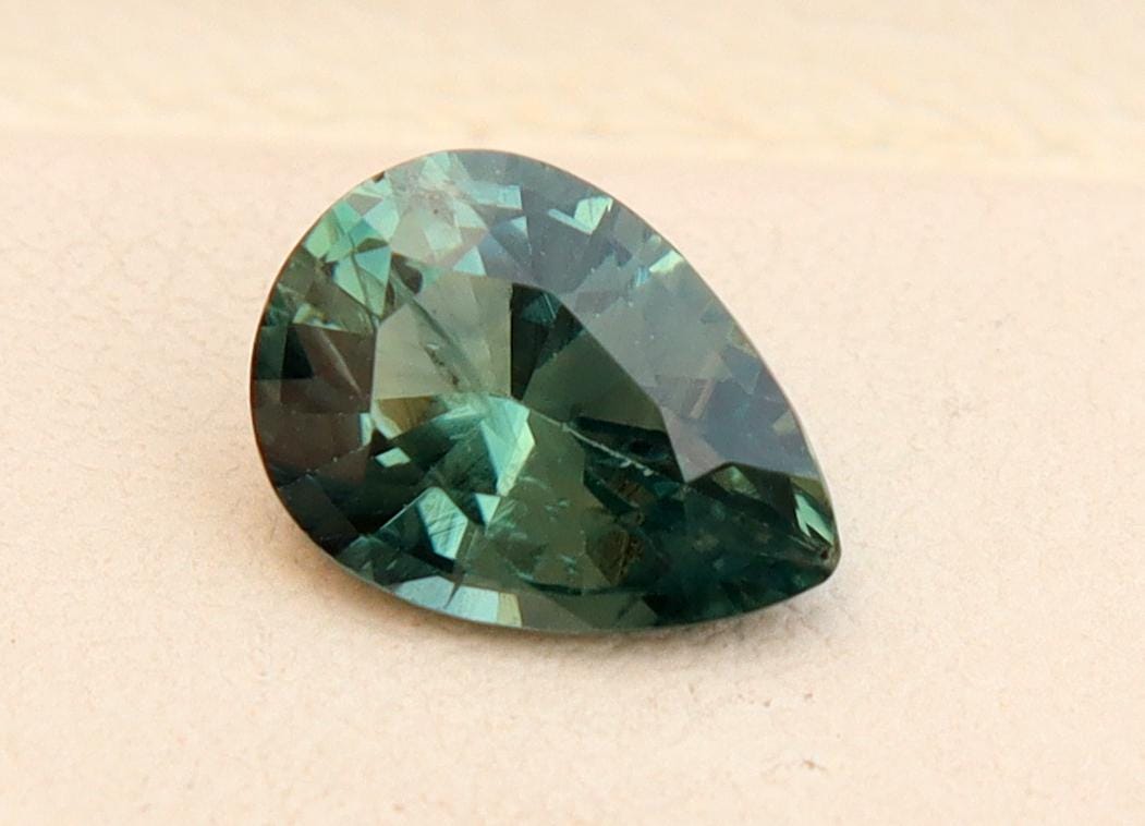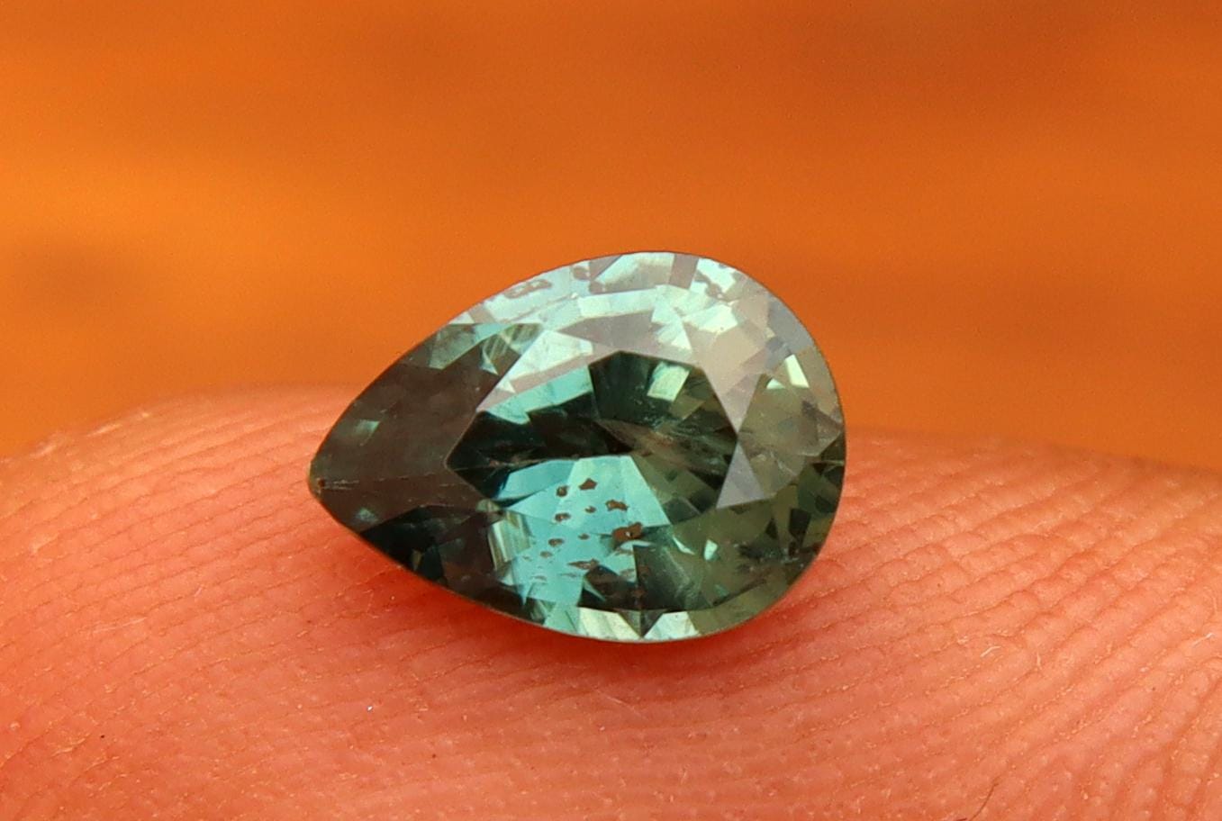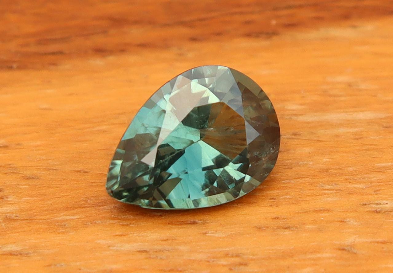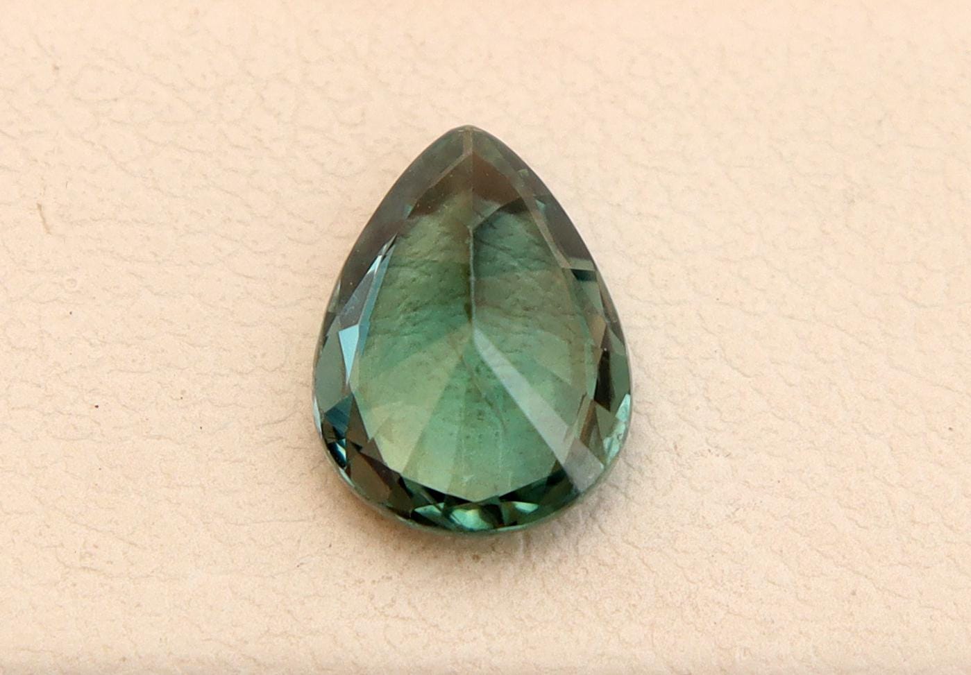 GSI Certified Green Teal Sapphire: 1.47 Carat Pear Cut Gemstone, Engagement Ring -
