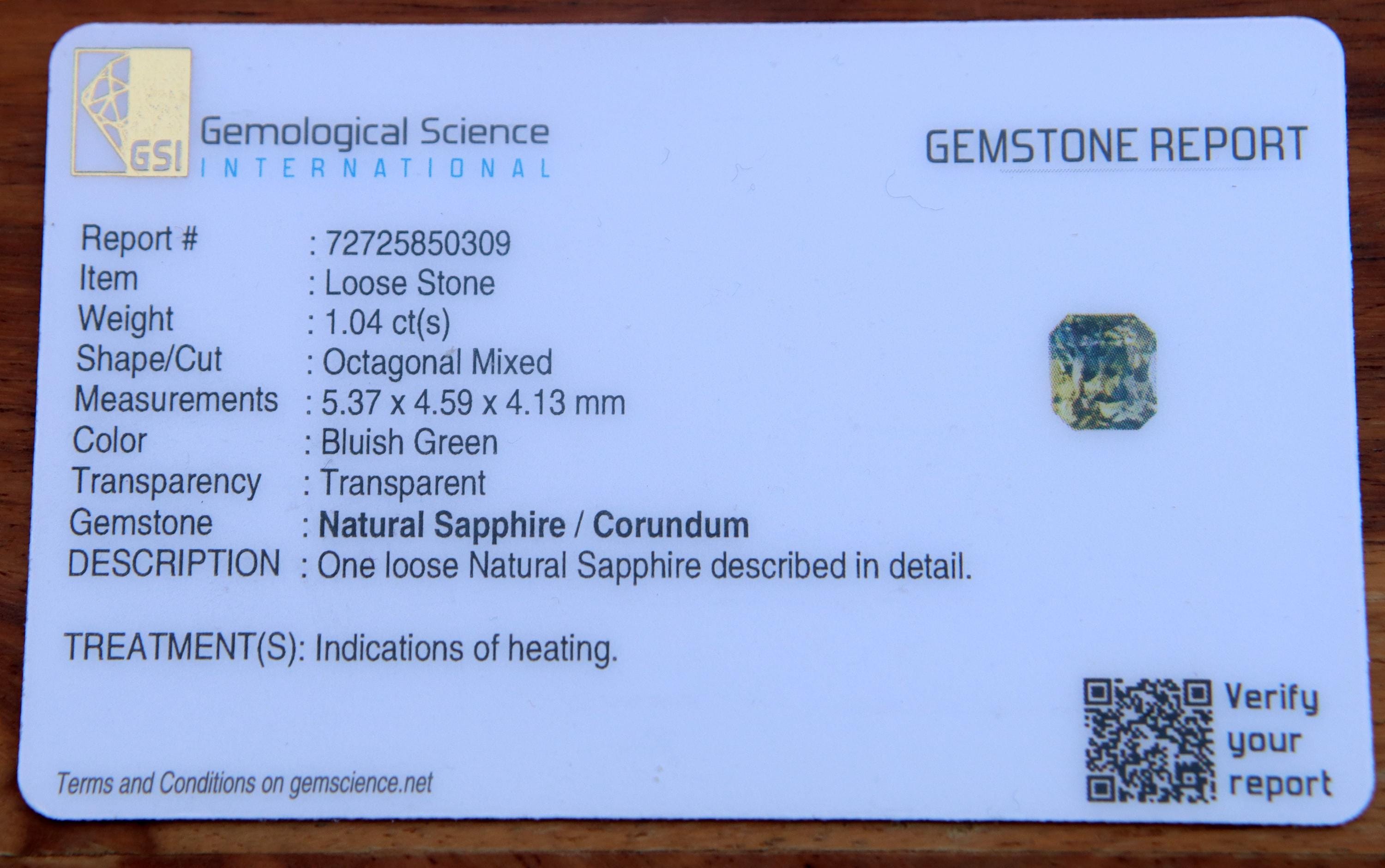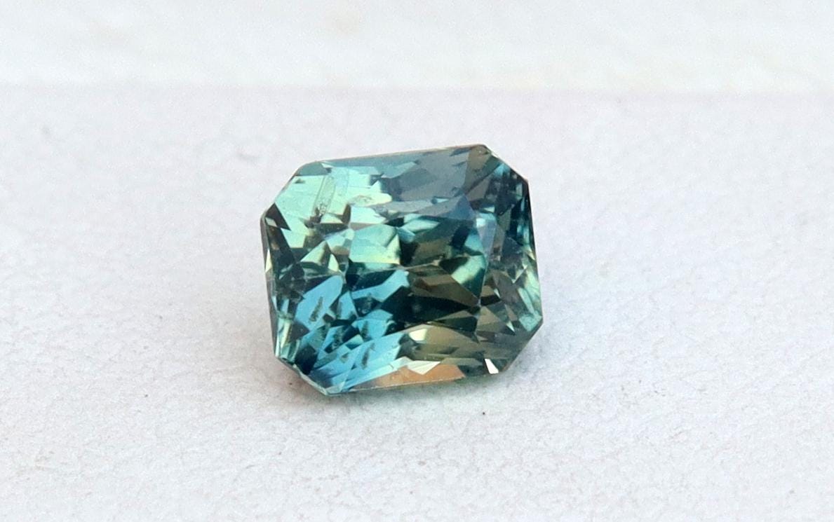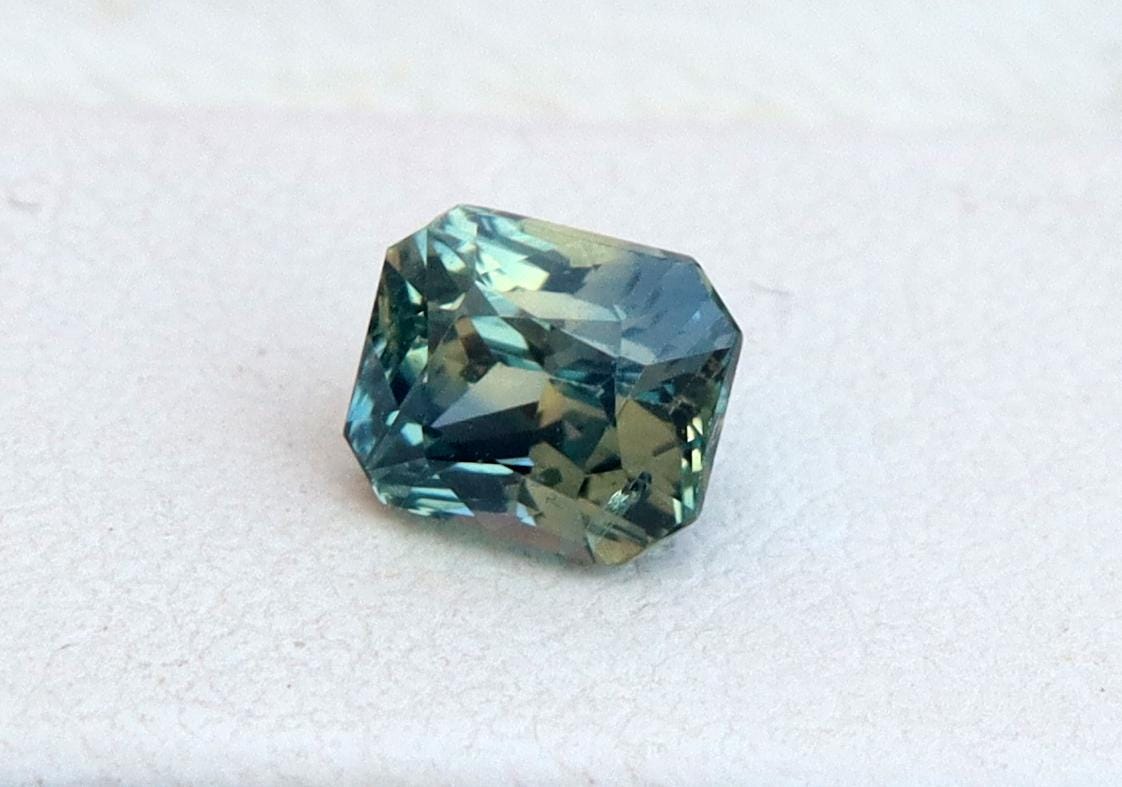 GSI Certified Teal Parti Sapphire 1.04 Carat Radiant Cut Gemstone, Engagement Ring -