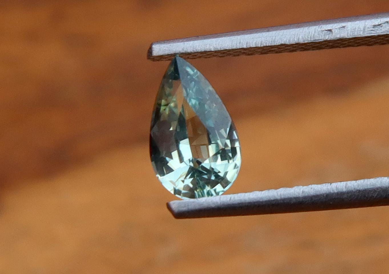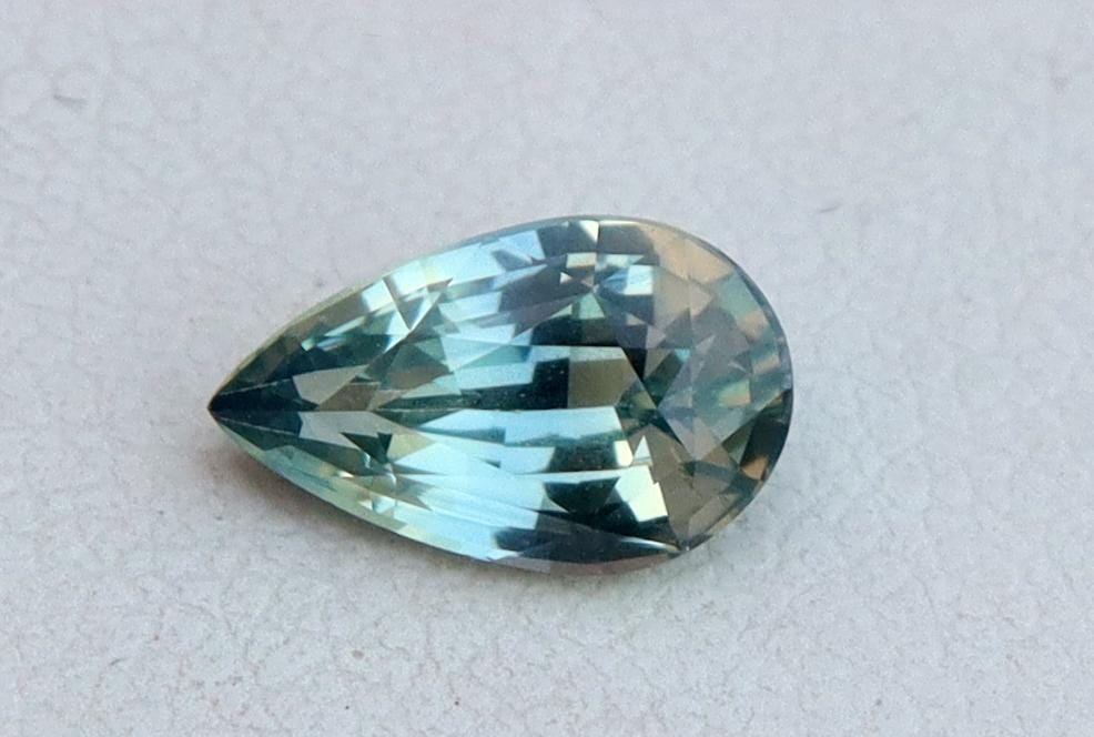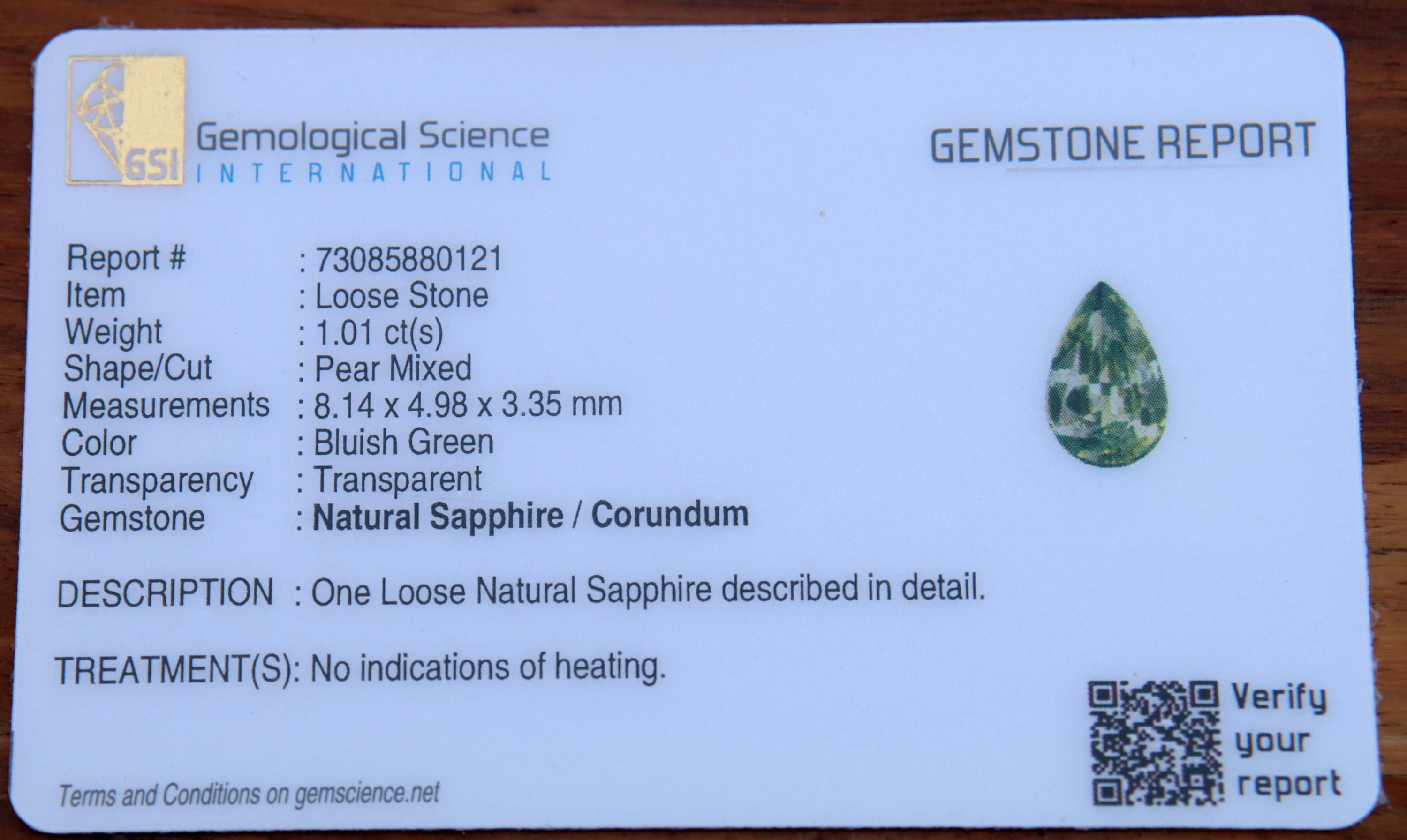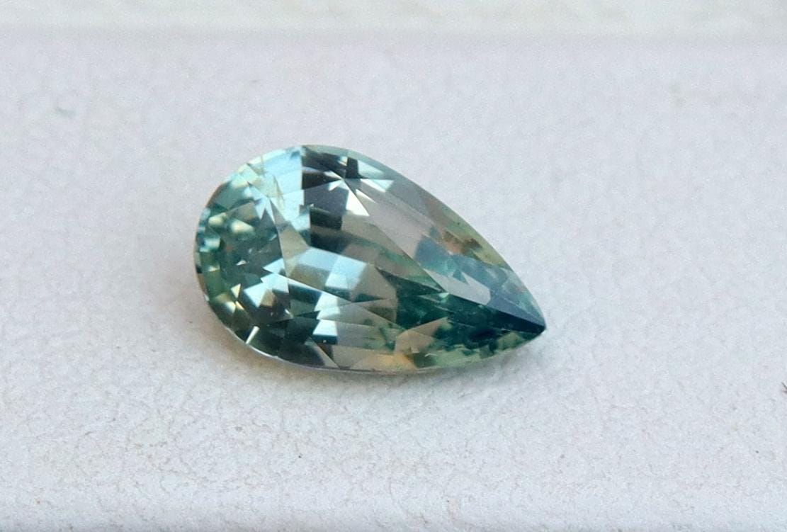 GSI Certified Unheated Mint Teal Green Sapphire: 1.01 Carat Pear Cut Gemstone, Engagement Ring -