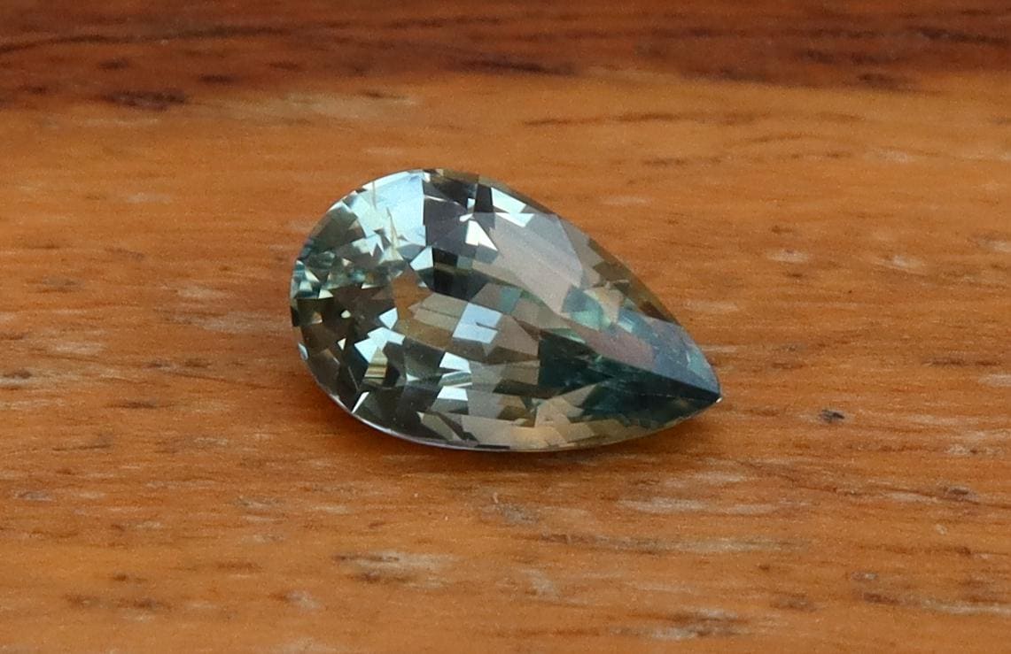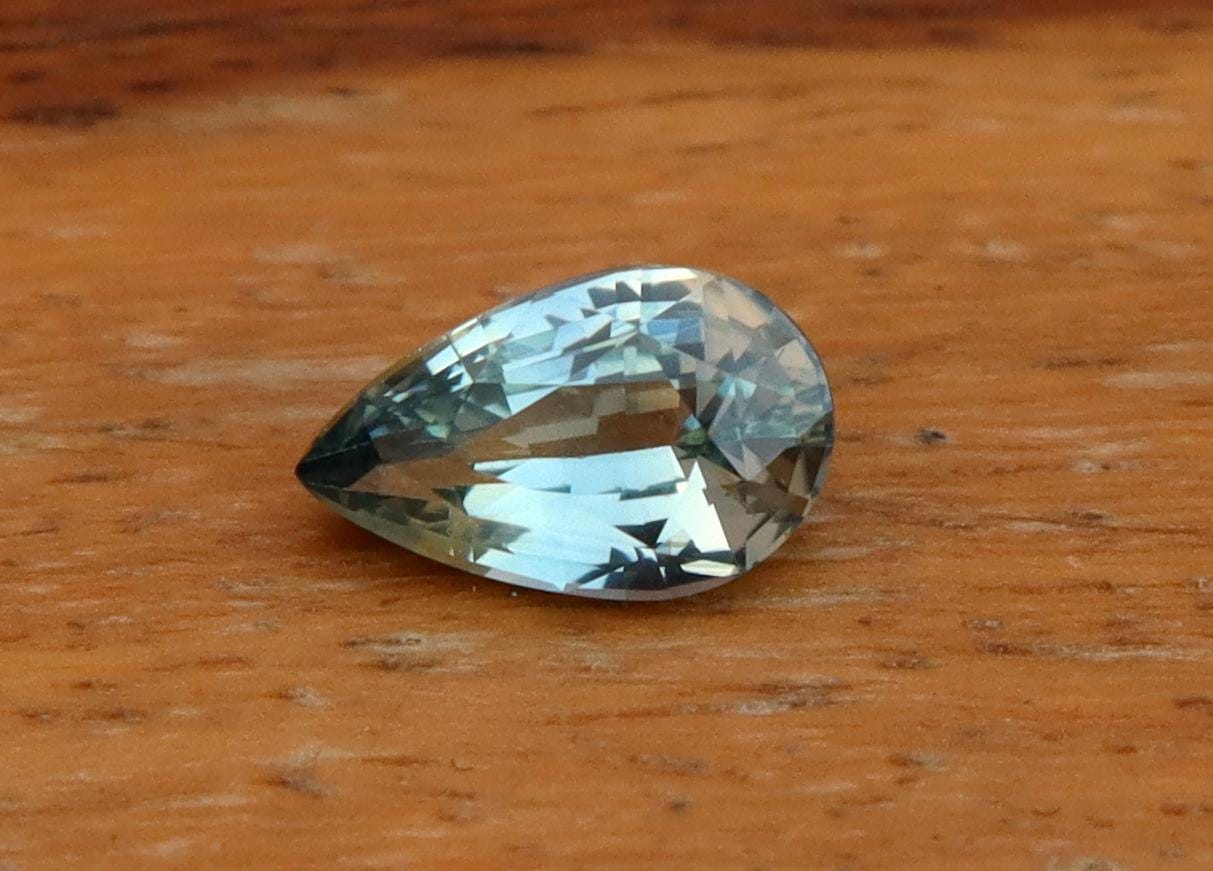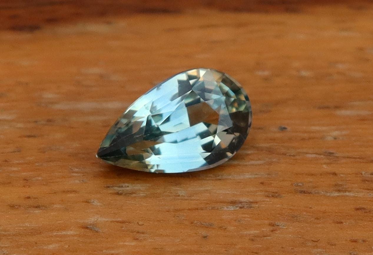 GSI Certified Unheated Mint Teal Green Sapphire: 1.01 Carat Pear Cut Gemstone, Engagement Ring -
