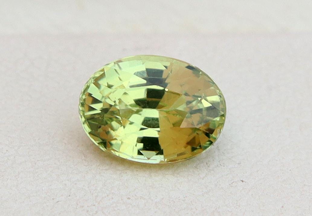 GSI Certified Unheated Greenish Yellow Sapphire 1.14 Carat Oval Cut Gemstone, Engagement Ring -