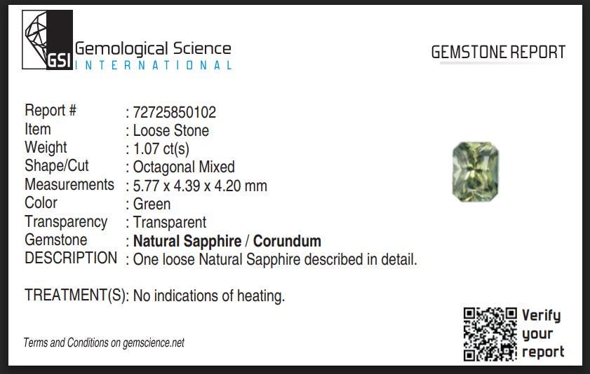 Certified Unheated Mint Green Teal Sapphire 1.07 Carat Radiant Cut Gemstone, Engagement Ring -
