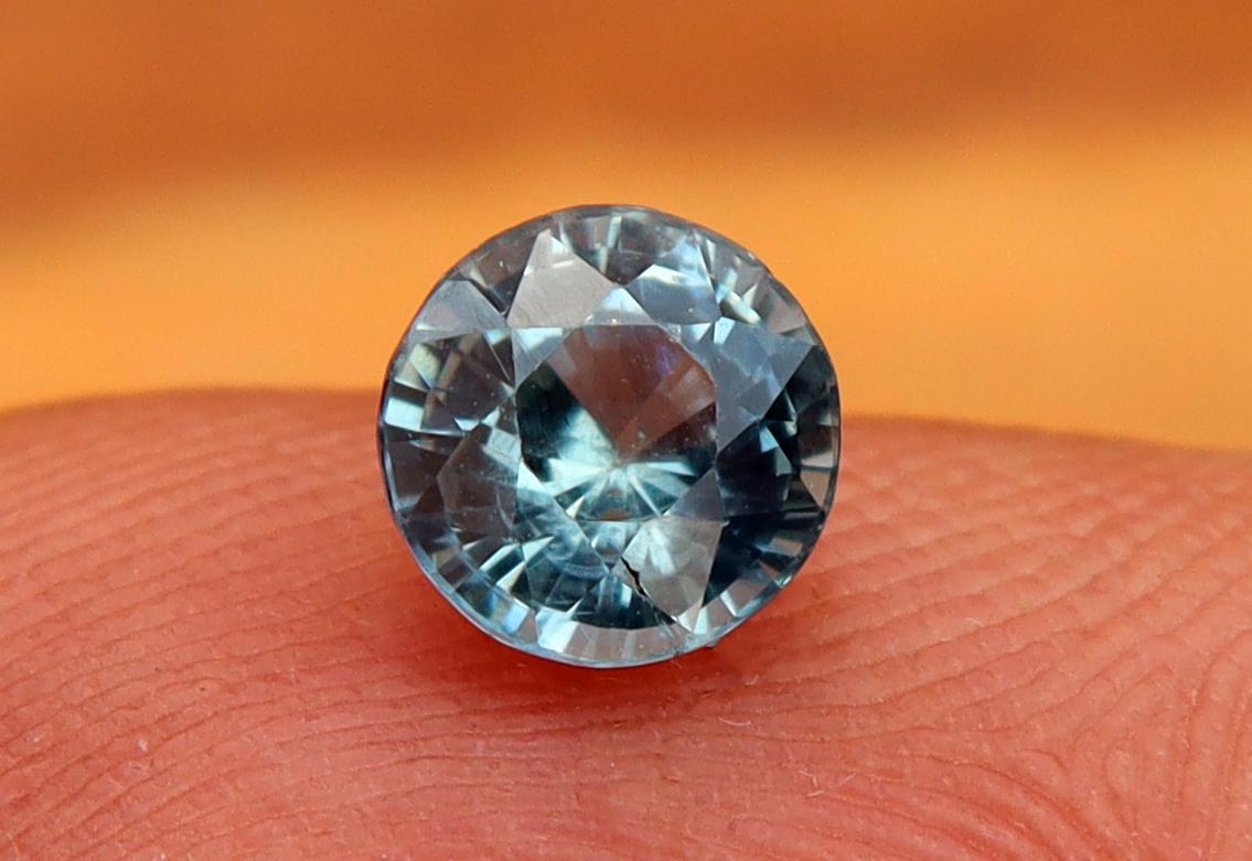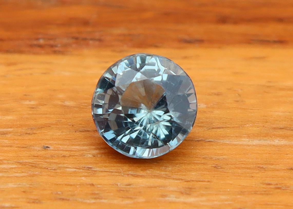 Natural Mint Greyish Teal Sapphire 1.01 Carat Round Cut Gemstone, Engagement Ring -