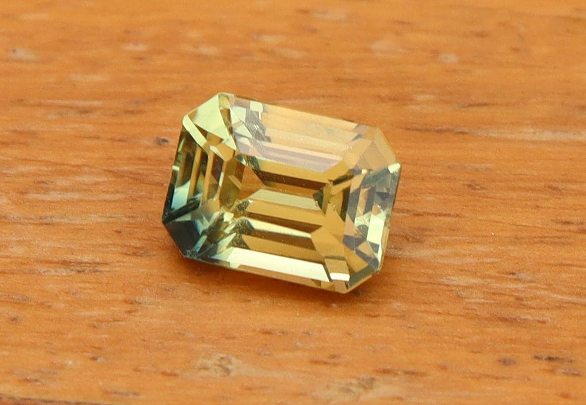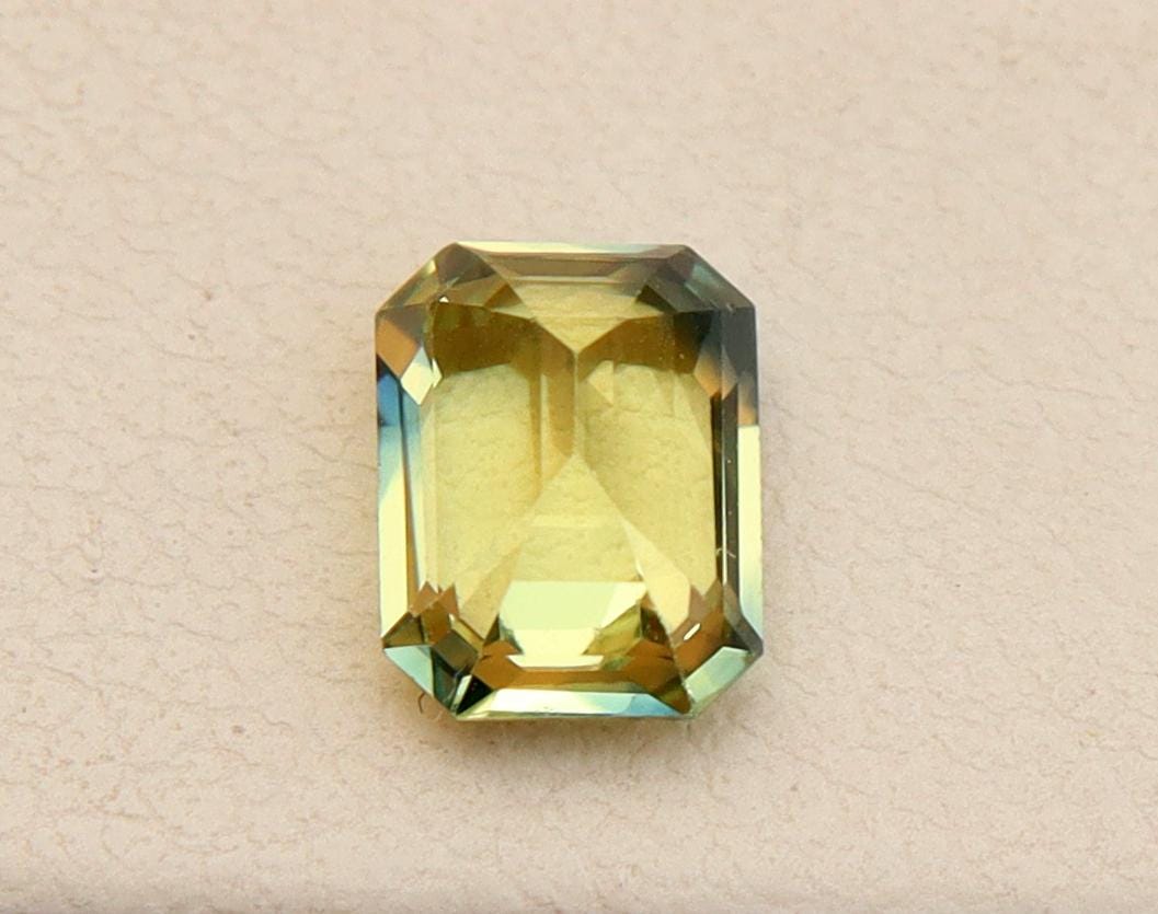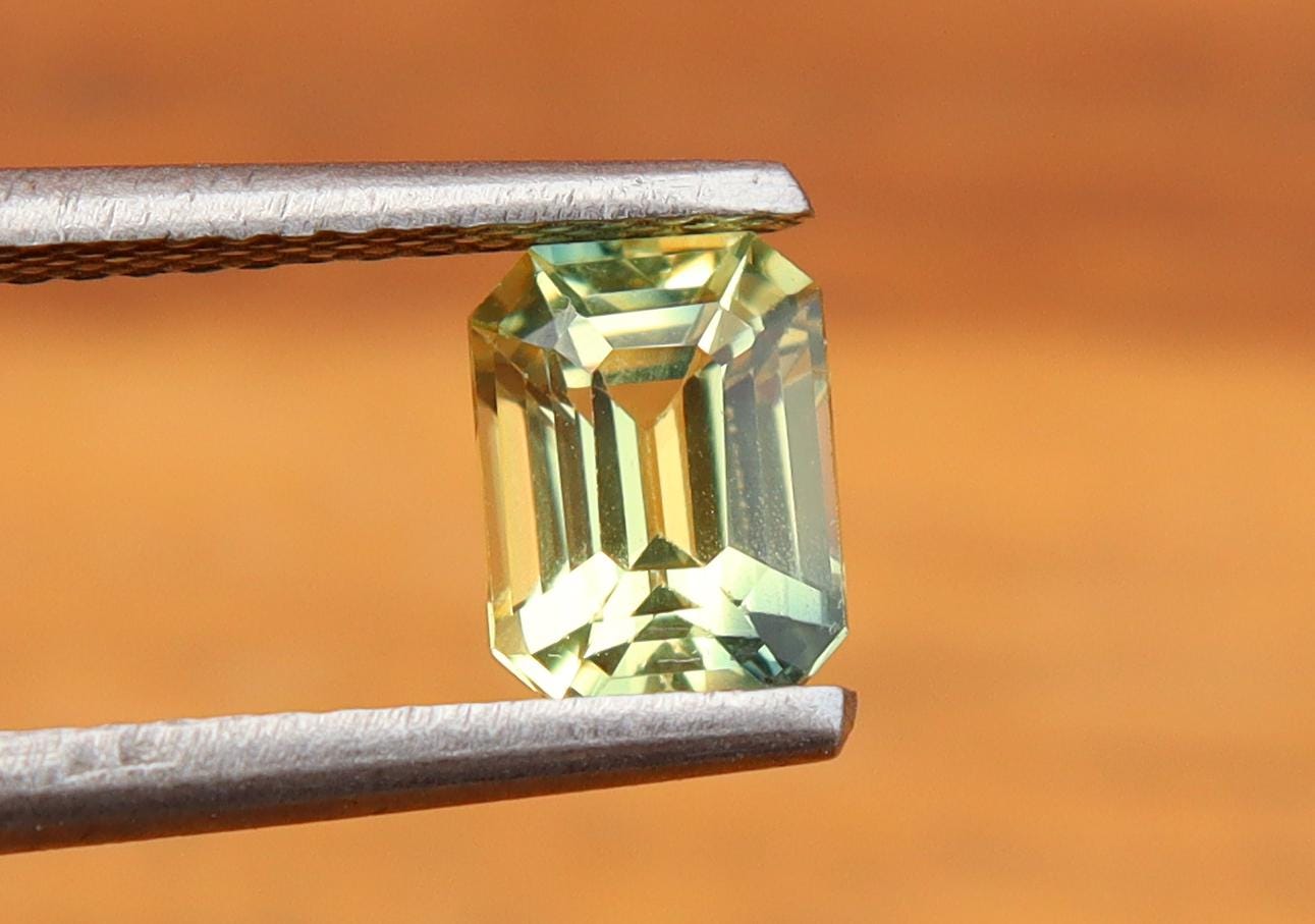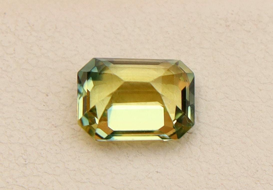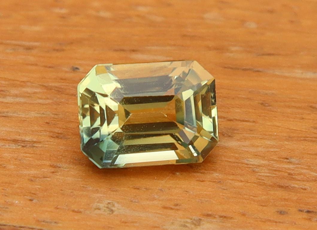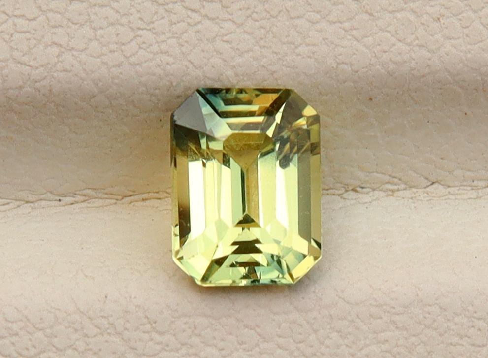 Natural Greenish Yellow Parti Sapphire 1.02 Carat Emerald Cut Gemstone, Engagement Ring -