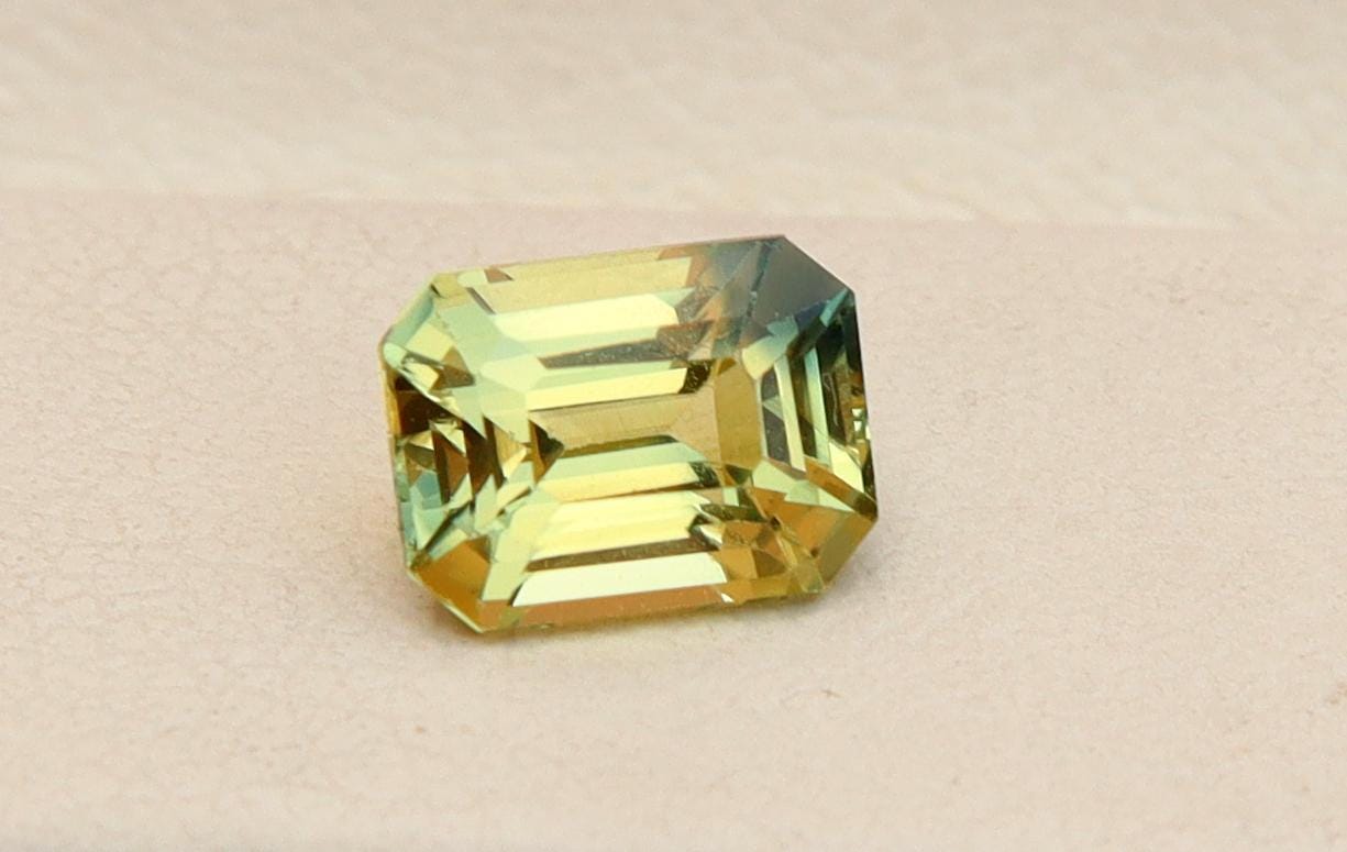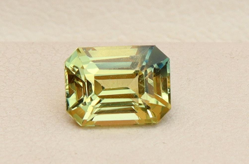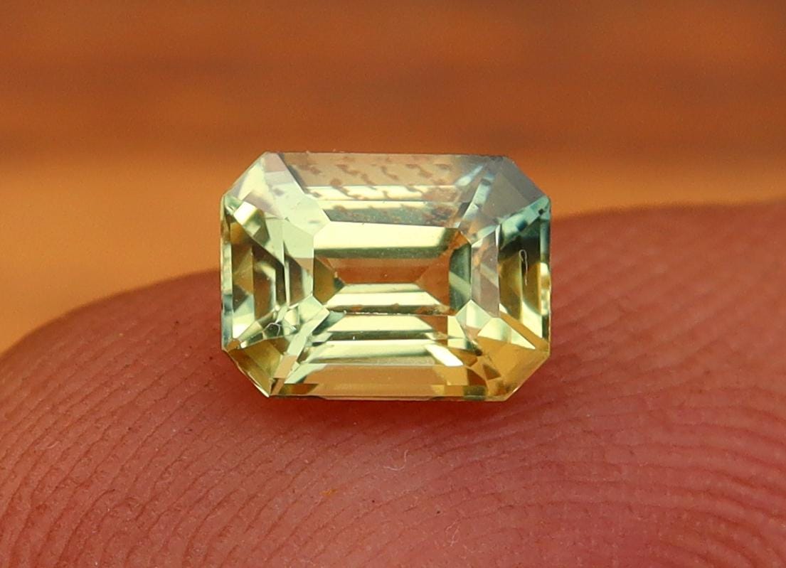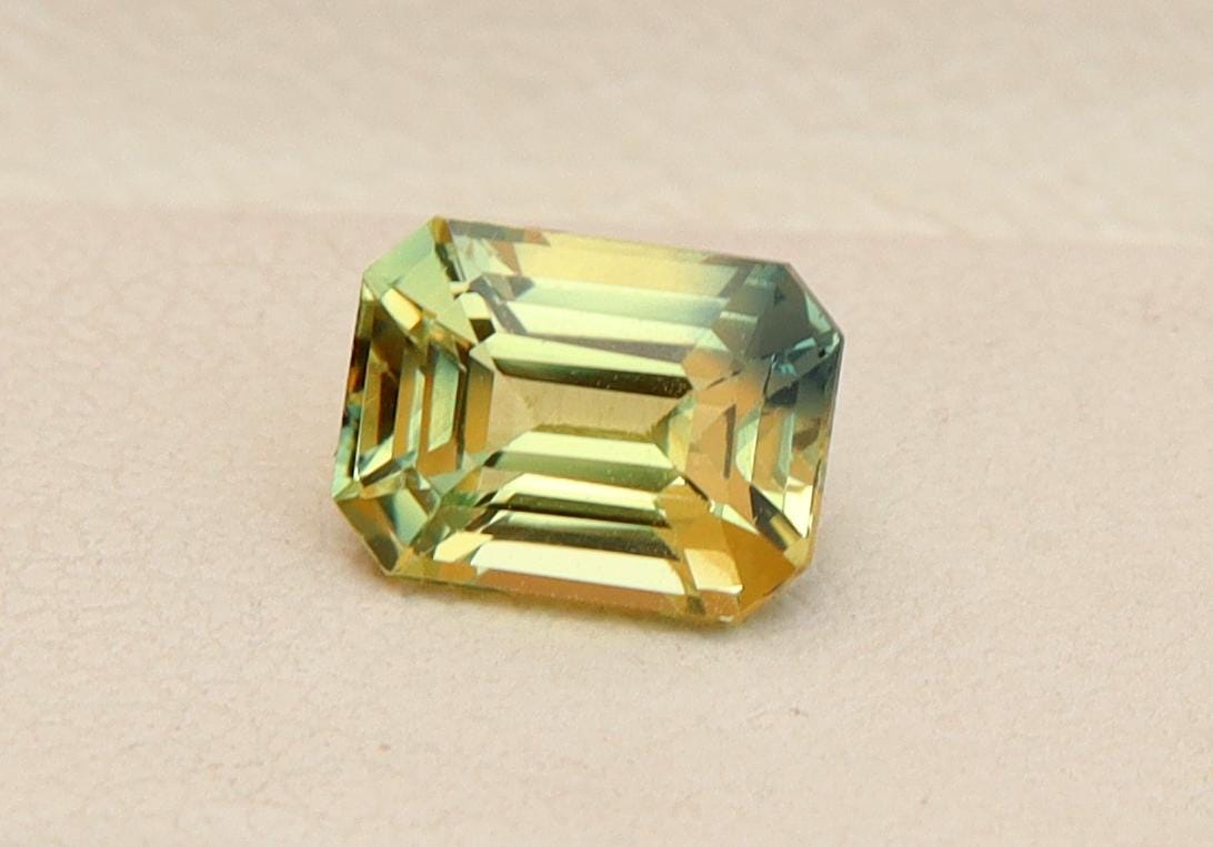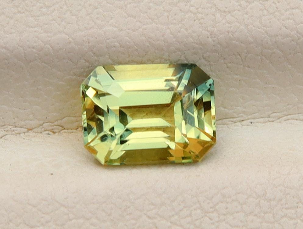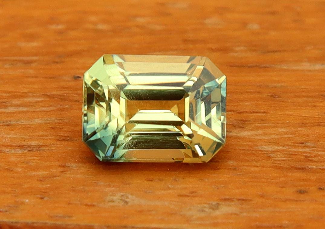 Natural Greenish Yellow Parti Sapphire 1.02 Carat Emerald Cut Gemstone, Engagement Ring -